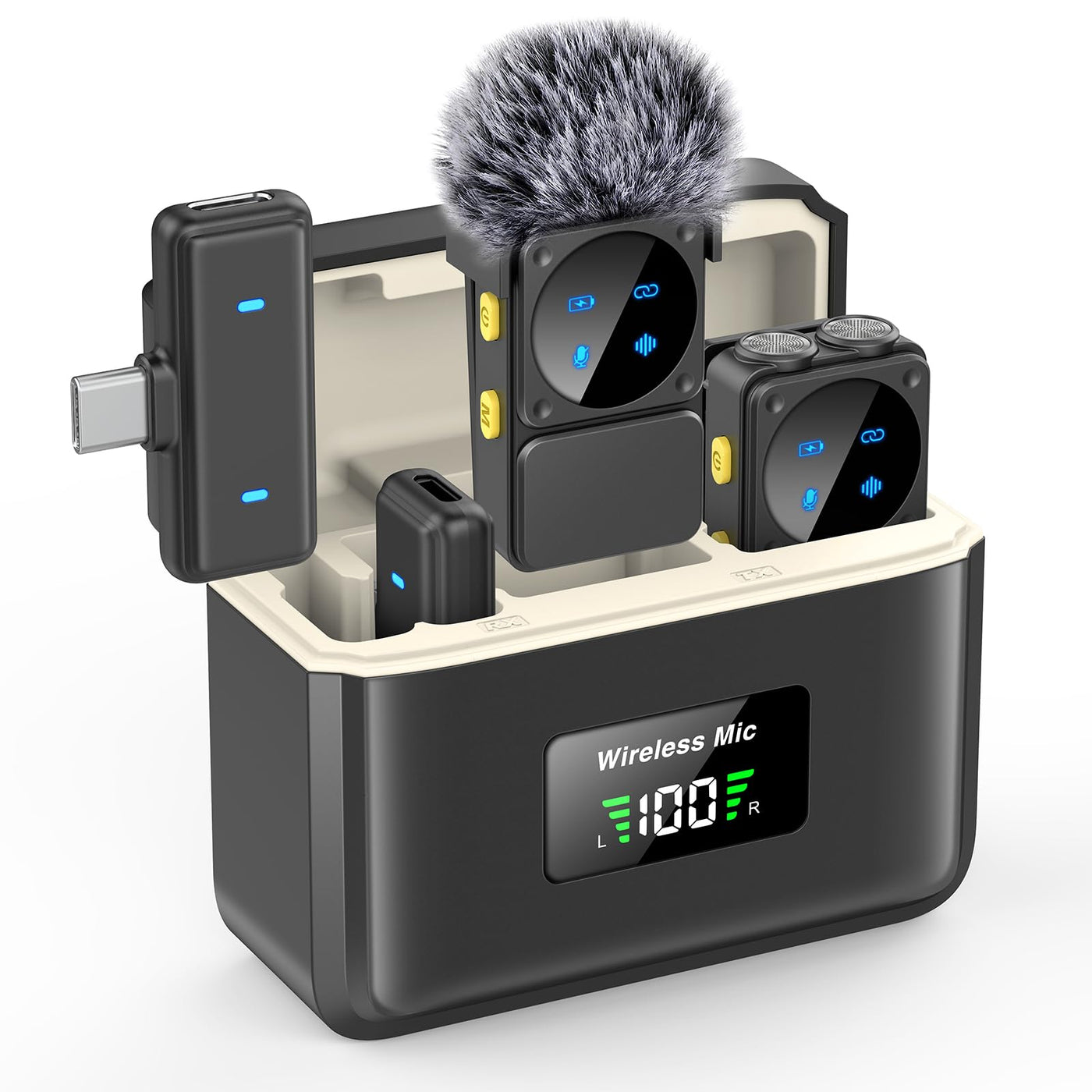 Mini Wireless Lavalier Microphone For Iphone Ipad Android With Lightning/Usb-C Plug, 80H Work Time Noise Reduction Lapel Mic For