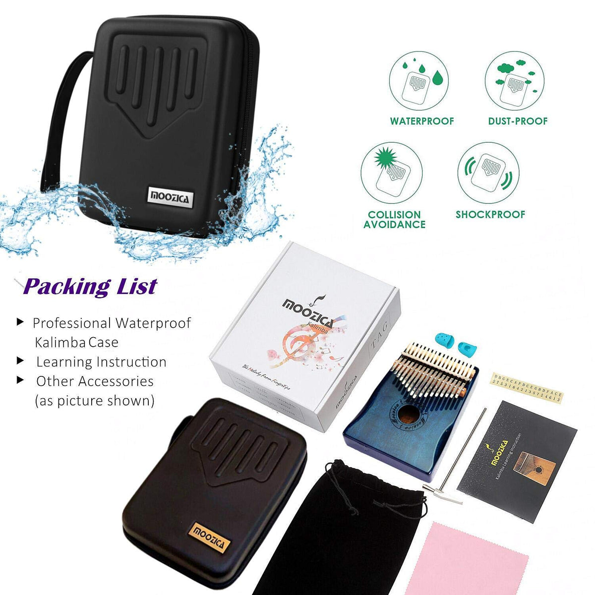 Ahogany Wood Mahogany Resists Wood Rot And Often Used For Premium Musical Instruments, Particularly The Backs, Sides Of Acoustic Guitars, Electric Guitar Bodies,And Drum Shells Because Of Its Ability To Produce A Very Deep, Warm And Bright Tone Piano Lacquer Finishingbeautiful High Gloss Finishing Makes This Kalimba Looks Beautiful And Shining, It Also Feels Really Smooth In Hand Specification -- Model: Moozica K17Bp -- Number Of Keys: 17 Tines From C4-E6 -- Body Material: Solid Mahogany Wood -- Color: Deep Blue(High-Gloss Piano Lacquer Finishing) -- Tine Material: Ore Metal -- Product Weight: 735G(Much Heavier Than Other Kalimbas On The Market) -- Size: 18*132*28Cm Ackage Include 1 -- 1 X Moozica K17Bp Kalimba 2 -- 1 X Professional Water-Resistant Kalimba Hard Case 3 -- 1 X Portable Cloth Bag 4 -- 1 X Tune Hammer & Music Scale Stickers 5 -- 1 X Kalimba Learning Instruction(User Manual + Music Score) 6 -- 1 X Cloth Wiper Note 1 Every Piece Of Nature Wood Is Unique, Color And Pattern Might Be Slightly Different From Pictures 2 The Tremolo Chain Is Used To Creat A Interesting Jingle Effect, It Can Be Easily Attached Or Removed 3 Your Shopping Satisfaction Always Comes First In Moozica Storewe Offer Flexible Return&Exchange Service, Please Contact Us Via Contact Seller If You Have Any Questions Were 100% Responsible For Your Purchase