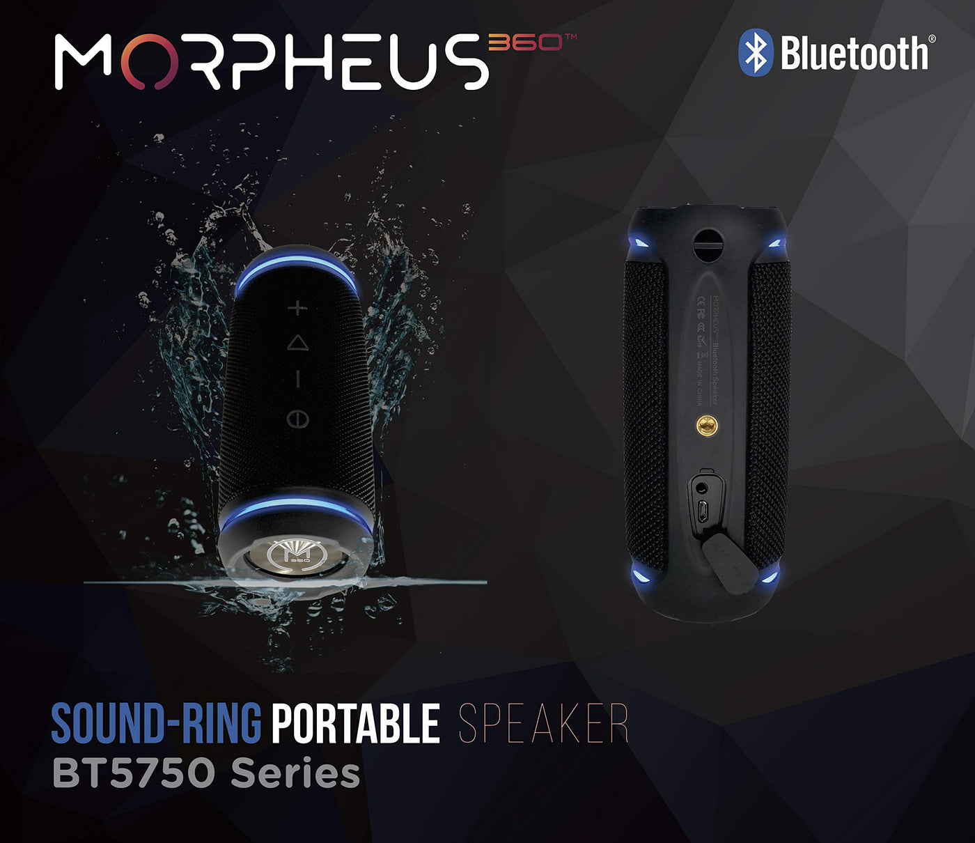 Our Morpheus 360 Wireless Sound-Ring Portable Speaker Is Comprised Of 2 Active Speakers And 2 Passive Radiators, Providing A Dynamic Bass Response, While Still Hitting The Mid-Range And High-End Tones You Expect 12 Watts Loud Our State-Of-The-Art Bluetooth Portable Speaker Design Is Tws (True Wireless Stereo) Which Allows You To Pair Two Morpheus 360 Wireless Speakers Together For True 360 Hd Surround Sound We Designed The Cylinder Utilizing Abs Plastic On The Ends And The Body, While Wrapping The Speaker In A Fabric Mesh The End Result Is A Cutting-Edge Portable Bluetooth Speaker Waterproof Design That Is Both Rugged And Waterproof (Ipx6) We Included 2 Led Rings In The Speaker Design That Provide Visual Alerts, In The Form Of Various Colors To Alert You Once You Have Paired The Speaker (Solid Blue), When The Speaker Needs Charging (Flashing Red) And When The Speaker Is Fully Charged (Solid Green) The Built-In Microphone Allows You To Take Calls With The Touch Of A Single Button And The One-Touch Media Controls Allow You To Control Track Forward And Back As Well As Volume Up And Down Right From The Speaker We Also Included A Bicycle Mount And Mounting Ring To Allow You To Take The Wireless Speaker On The Road With You If You Have Legacy Devices Such As Computers, Mp3 Players, Or Older Mobile Phones Laying Around The House, We Included A 35Mm Input Jack And Cable To Allow You To Connect These Devices
