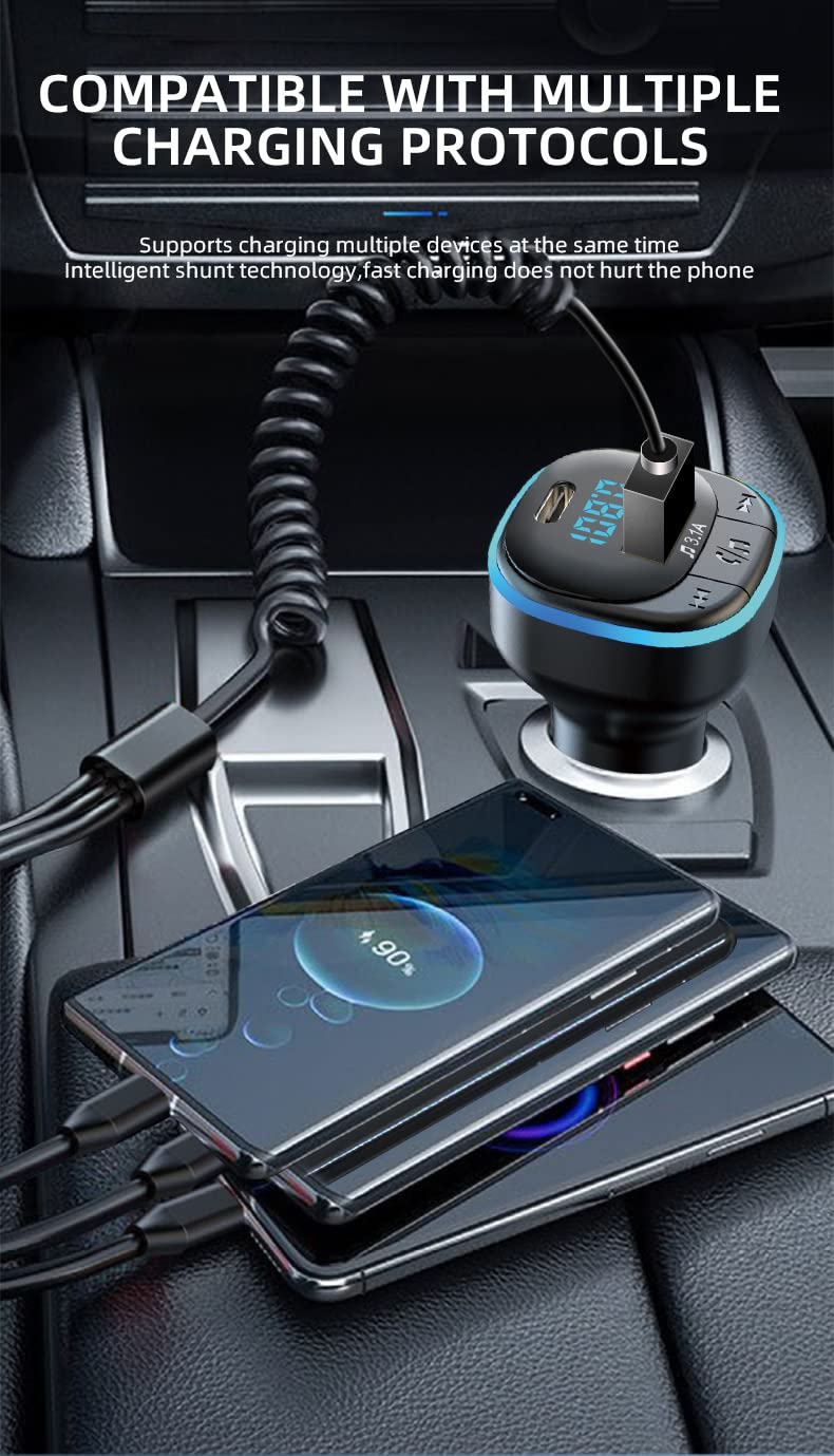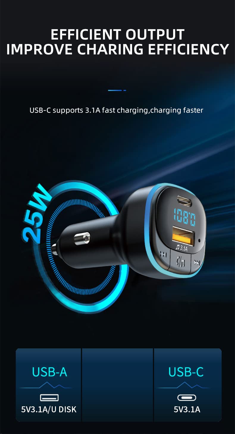Ohitec Bluetooth 5.0 Fm Transmitter For Car, Hands Free Calling, Built-In Over-Current Protection, 5V/3.1A Quick Charger & Blue Colors Led Backlit Car Radio Bluetooth Adapter, Support Usb Disk