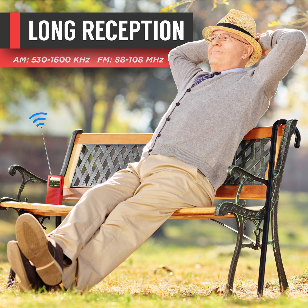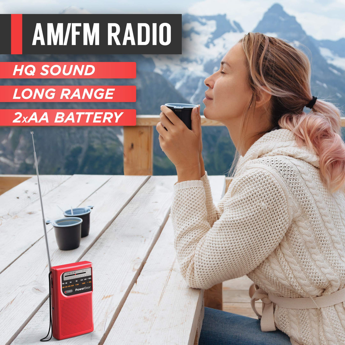 Powerbear Portable Radio | Am/Fm, 2Aa Battery Operated With Long Range Reception For Indoor, Outdoor & Emergency Use | Radio Wit