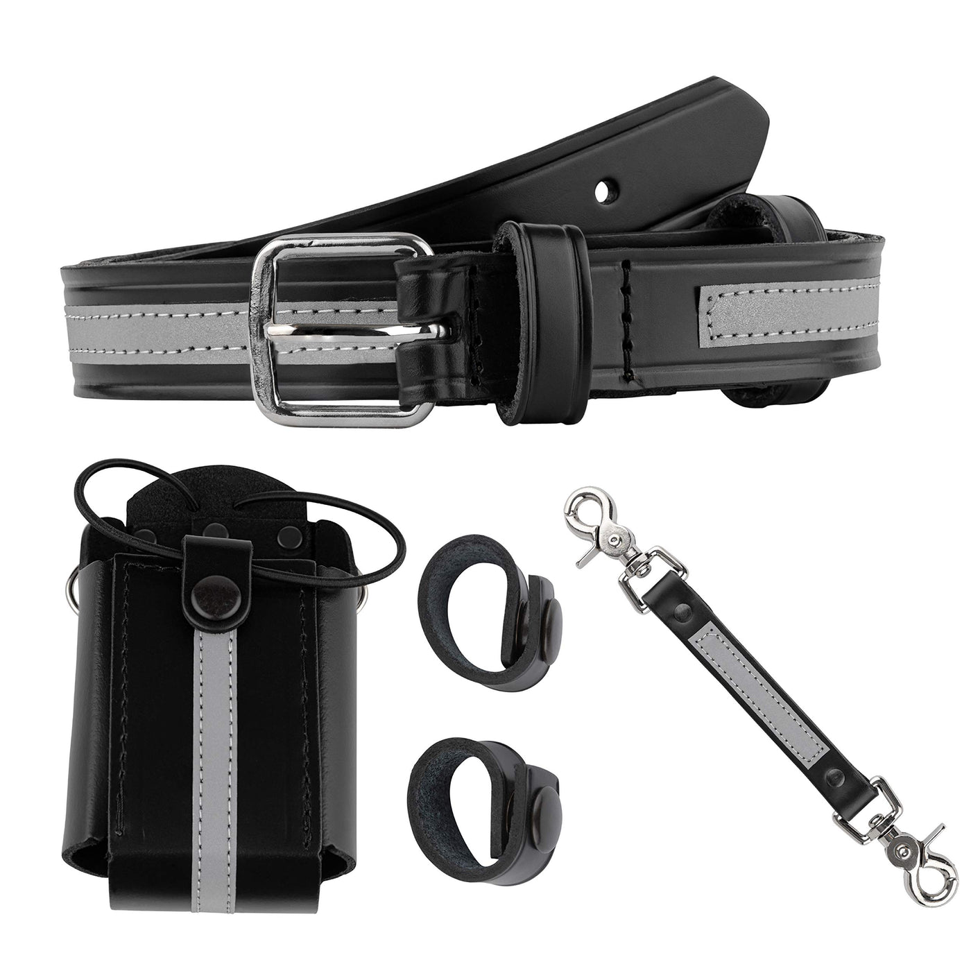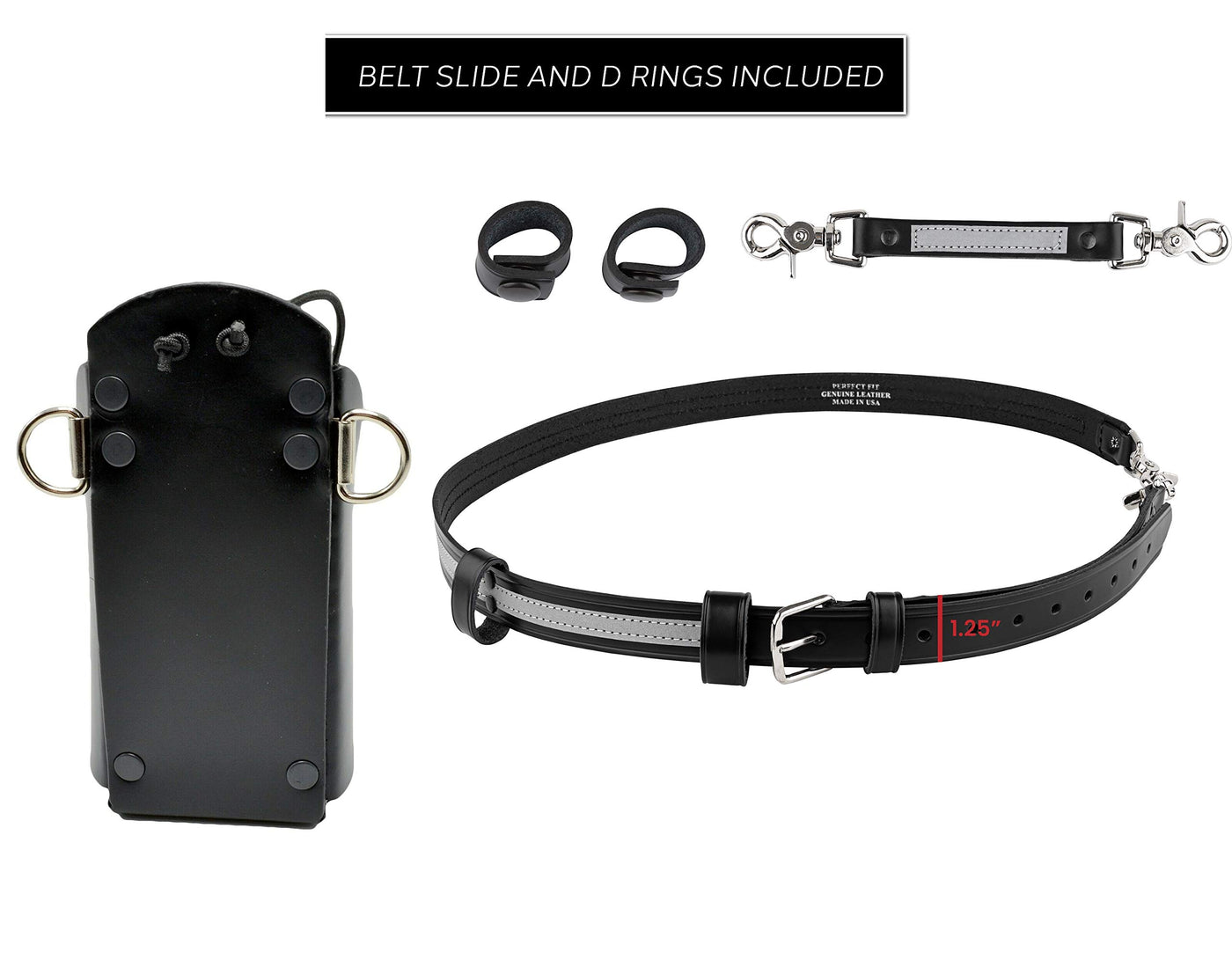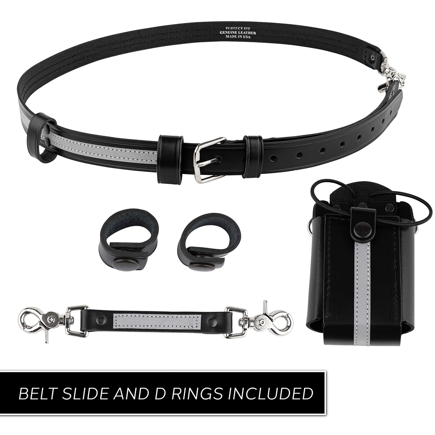 The Perfect Fit Universal Leather Reflective Fire Radio Bundle Is Made By Perfect Fit Shield Wallets In Corinna, Me. It Includes A Universal Radio Holder, Anti-Sway Strap, Radio Strap And Two Cord Keepers. There Is 3M Reflective Material On The Radio Holder, Anti Sway Strap And Radio Strap.