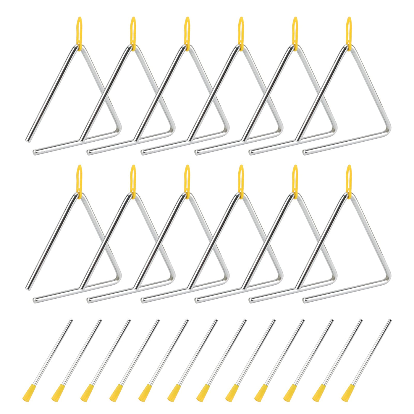 About Us: We Are Committed To Providing Our Customers With Brand New And Useful Products. Customer Satisfaction Is Backed By High Quality Products And Perfect After-Sales Service. We Take This As Our Company Guideline. Try Shopping At Soujap Now, We Won'T Let You Down! Product Features: 1. These Triangle Percussion Instruments Are Made Of A Sturdy Alloy That Is Hard, Strong, And Durable And Will Not Break Or Deform Easily. 2. The Triangle Instrument Has A Smooth, Burr-Free Surface That Won'T Scratch Your Hands. They Have A High Gloss Finish And Are Very Aesthetically Pleasing. 3. Our Hand Percussion Triangles Have A Side Length Of 6 Inches, Each Of Which Is Equipped With A Metal Striker, And The Knocking Sound Is Crisp And Loud. 4. Musical Triangle Instruments Are Perfect For Music Lovers To Play Or Practice, Perfect For Percussion Ensembles, Music Clubs, And Party Performances. Specifications: Material: Alloy Size: 6 Inch Color: Silver Quantity:12 X Musical Metal Triangles