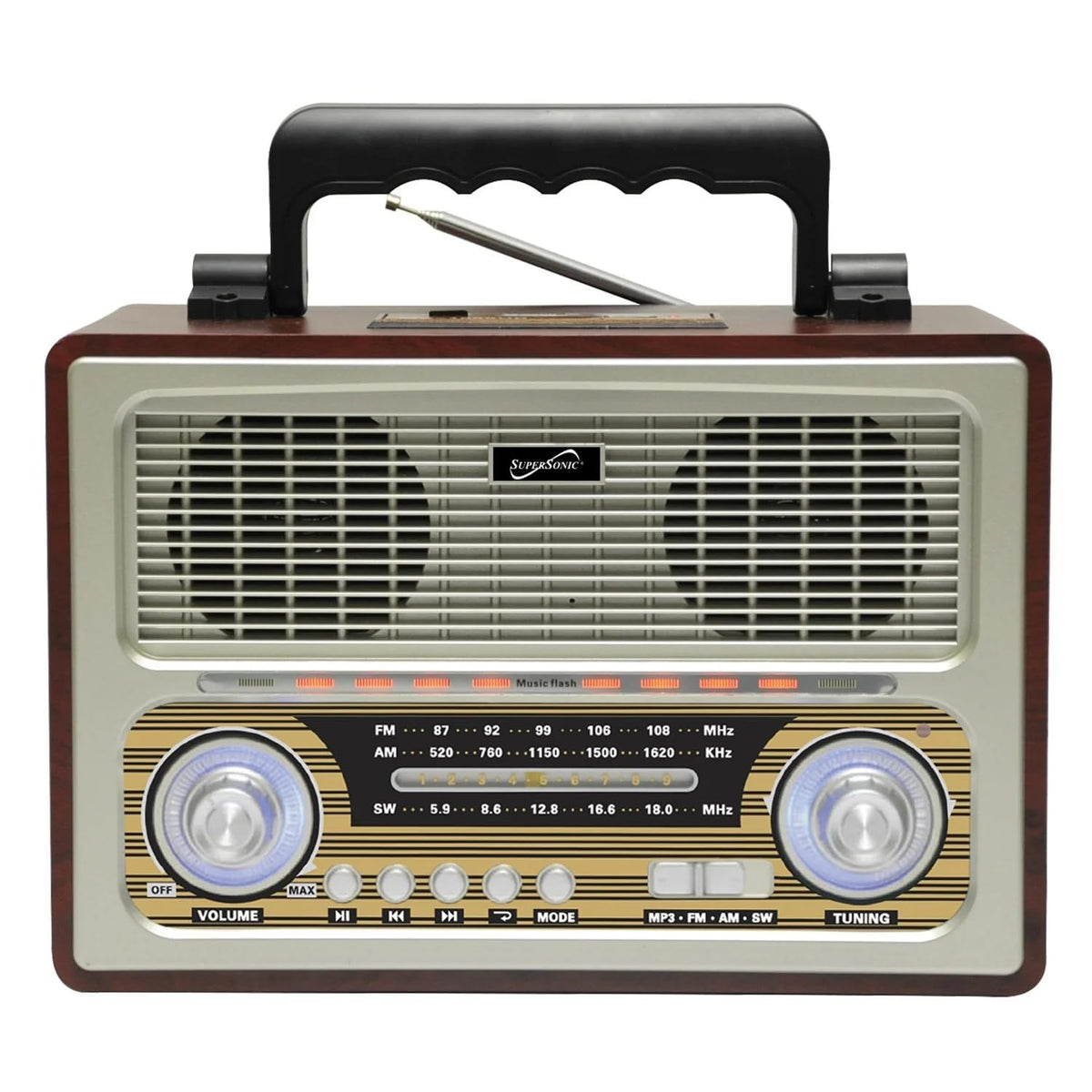 The Supersonic Multi-Function Bluetooth Speaker With Rechargeable Battery Has A Built-In Bluetooth Receiver Allowing You To Wirelessly Connect To Your Bluetooth Enabled Devices The Retro Look Radio Has Dynamic High Performance Speakers And A Built-In Amfmsw 3 Band Radio The Telescopic Antenna Allows For Excellent Reception To Keep You Connected