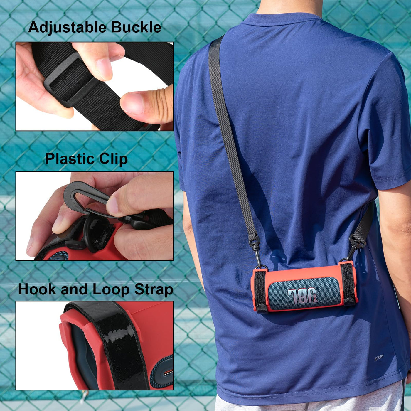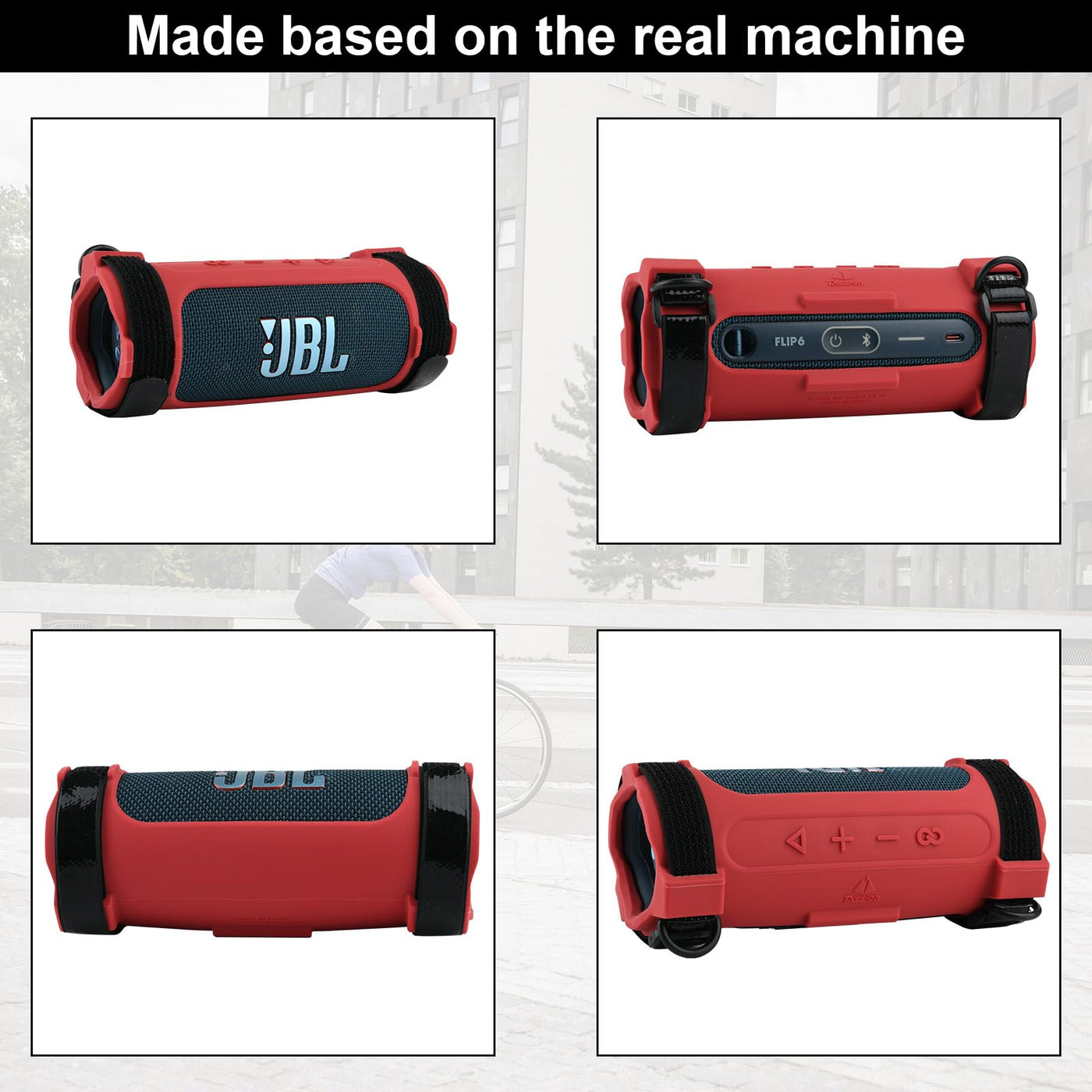Txesign Silicone Protective Case Cover For Jbl Flip 6 Wireless Bluetooth Speaker Advantage: 1. High Quality Durable Silicone Material To Guarantee Its Lifespan. 2. Customized Press Button Icons, Reserved Charging Port Position, Use Speaker With The Case On, Will Not Affect The Sound Quality. 3. Install The Included Hook And Loop Straps And Shoulder Strap, You Can Carry It Out, Release Your Hands. 4. Fix Your Jbl Flip 6 Speaker Through The Hook-And-Loop Straps On The Railing Of Bicycles, Golf Carts, Yachts, Etc. Specification: 1. Material: Silicone 2. Color: Red 3. Net Weight: 192 Gram 4. Case Size: 7.28'' X 2.55'' X 2.55'' How To Install: 1. Put The Silicone Sleeve On The Speaker. 2. Put The Plastic Buckles Into The Hook And Loop Straps. 3. Pass The Two Straps Through The Holes On Both Sides Of The Silicone Case To Fix Them. 4. Finally Buckle The Shoulder Strap On The D-Shaped Buckle. Packing Includes: 1 X Flexible Silicone Case 1 X Shoulder Strap 2 X D-Shape Plastic Buckles 2 X Hook And Loop Straps (Noted: The Speaker Is Not Included)
