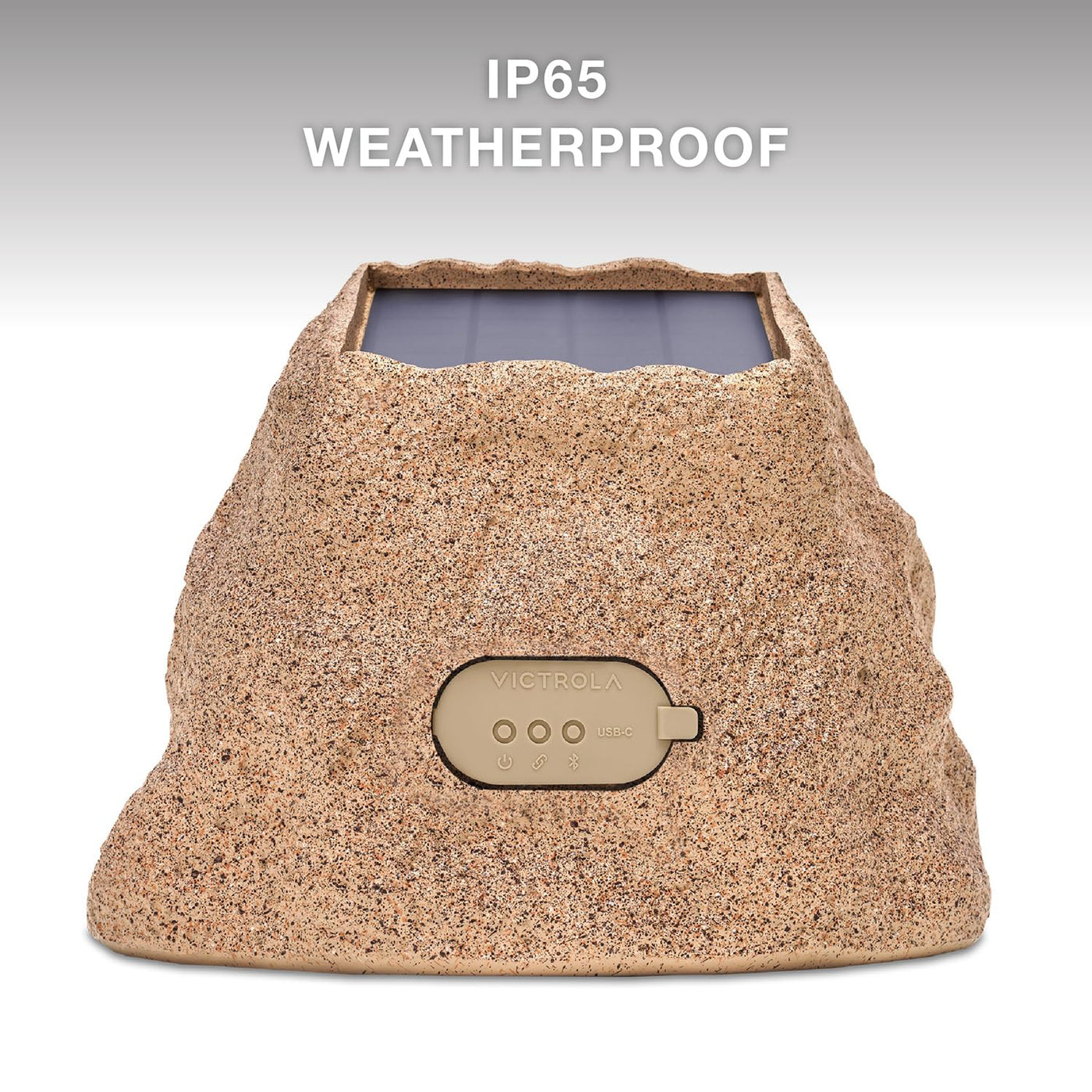 Q: What makes the Victrola Rock Speaker Connect suitable for outdoor use?A: The Victrola Rock Speaker Connect is designed for outdoor use with an IP65 rating for water and dust resistance, ensuring it can withstand various weather conditions. Its rugged, rock-like exterior allows it to blend seamlessly into your outdoor environment, making it a perfect addition to gardens, patios, and poolside gatherings.