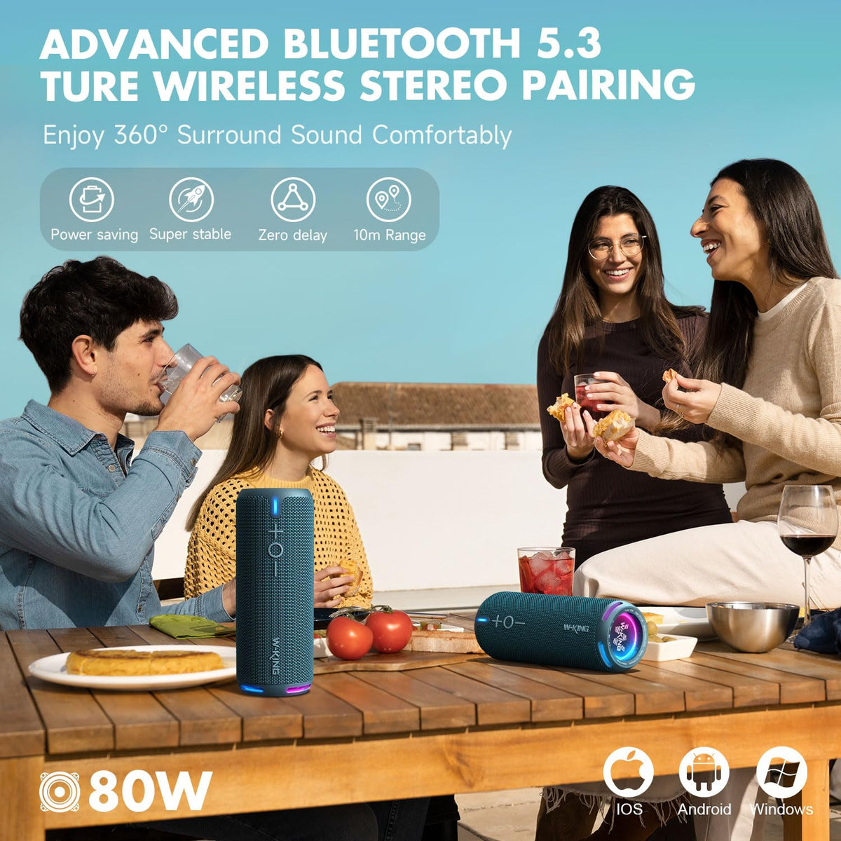 W King Portable Bluetooth Speakers Loud, Ipx7 Waterproof Outdoor Speakers Wireless, App Customized Eq, Dual Voice Coil/Deep Bass, 360� Sound With Lights/V5.3/Tf/Aux, 40W Party Boombox Shower Speaker