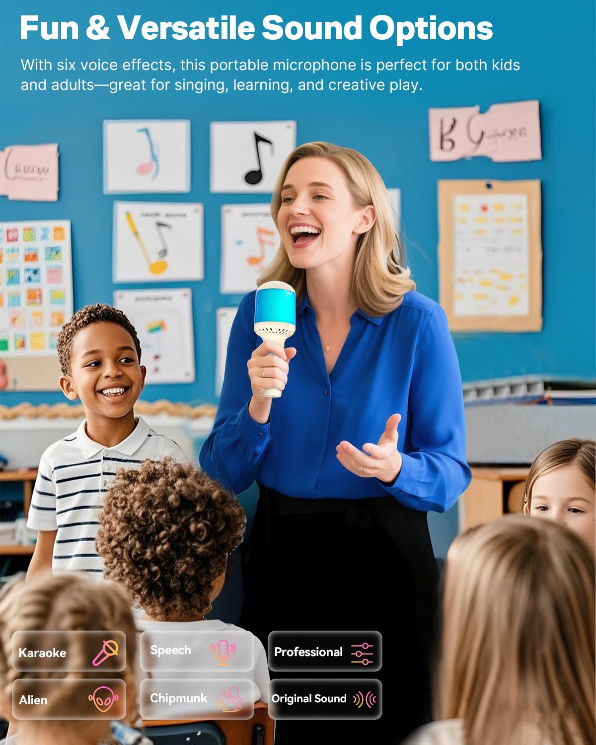 Wireless Bluetooth Karaoke Microphone With Dynamic Lights, Portable Handheld Mic, 6 Sound Effects, 10H Battery, Perfect For Kids