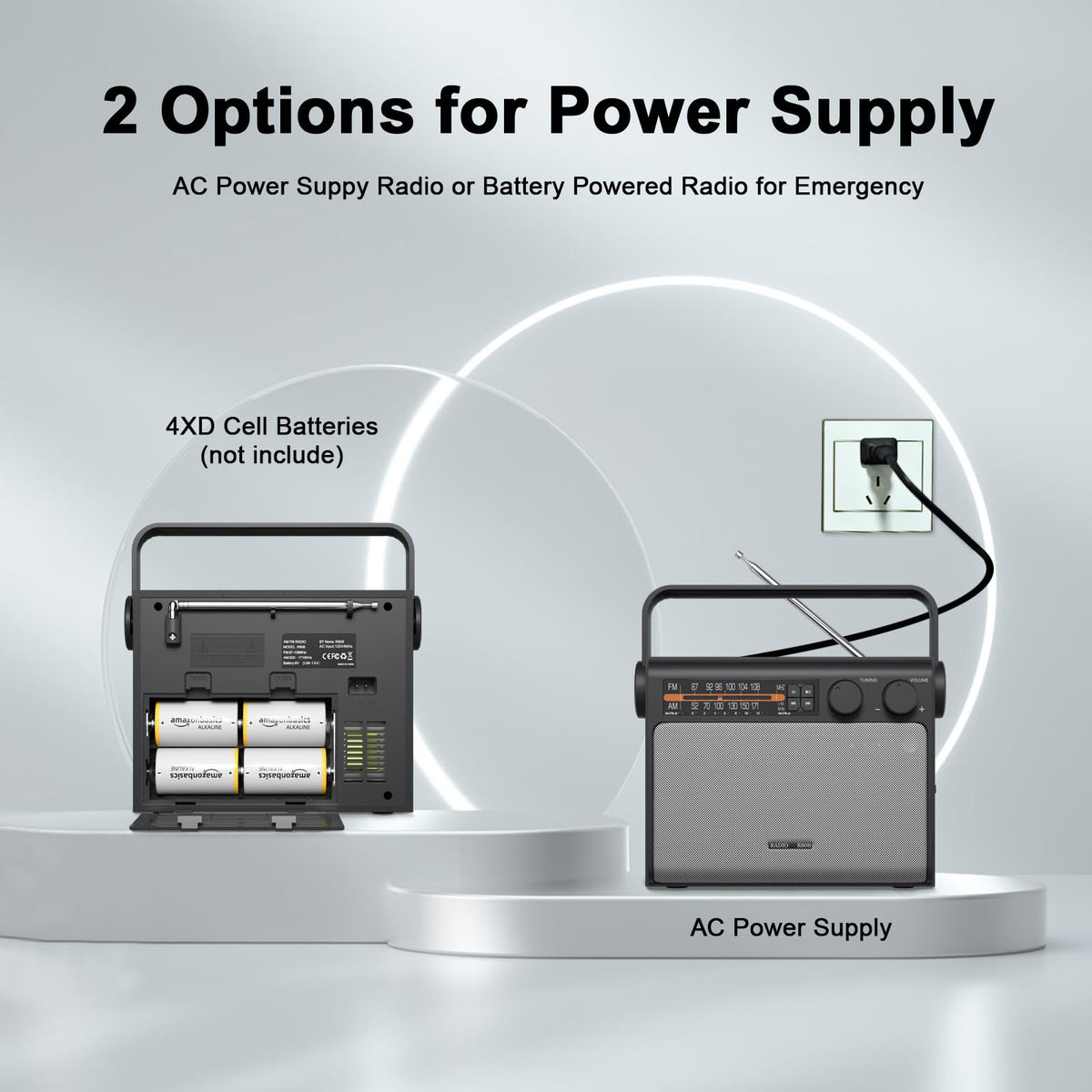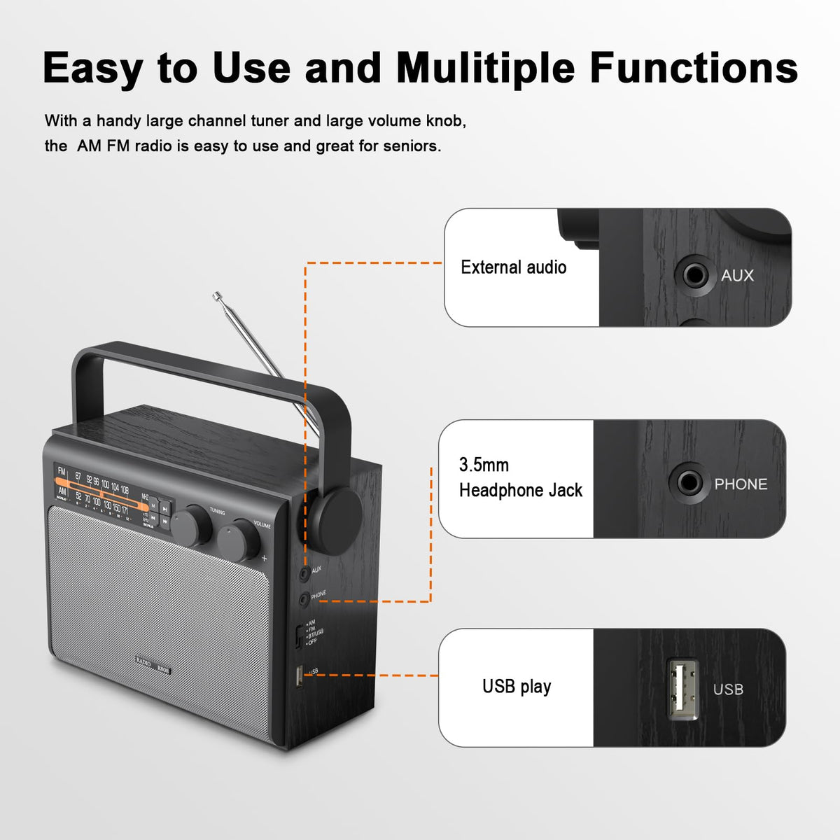 ???Yowgulf Am Fm Radios With Best Reception? - With 360-Degree Rotatable Long Antenna And Advanced Dsp Chip,The Radio Can Easily Capture Am Fm Staion Singal For You To Listen To Your Favourite Music, Npr, Sports And News Stations No Matter At Home Or Outdoor.Supports Ultra-Wide Signals In Both Fm (87-108 Mhz) And Am (520-1710 Khz) Frequency Bands. | ???Affordable Basic Am/Fm Radio With Bluetooth & Big Speaker & Headphone Jack & Aux In?- The Am Fm Radio Supports Bluetooth Function To Connect Any Bluetooth Device Compatible To Enjoy Music With Good Sound Quality. Also Simply Plug In Any Headphones With A 3.5Mm Jack For A Private Listening Space On The Go. | ???Easy To Use Radio?- With A Handy Large Channel Tuner And Large Volume Knob, The Portable Am Fm Radio Is Easy To Use And Great For Seniors. Tuning Is Smooth Making The Station Selection Right On And Large Station Numbering For Older Folks. A Handle On The Radio Makes It Not Difficult To Take Outside. This Am/Fm Radio Just Takes You A Few Seconds With Some Fine Tuning To Get Right On Your Station. | ???Ac Power Suppy Radio Or Battery Powered Radio For Emergency?- This Am Fm Radio Has Two Power Supply Choice. While You Are Indoor, The 120V Ac Power For You To Plug In The Wall To Listen Radio Whole Day. If There Power Outage, Don'T Worry, With Our Battery-Operated Portable Am/Fm Radio, You Can Change The Battery In Time To Keep The Radio Running.This Radio Will Keep You In Touch With The World And Get Live News. | ???Ideal Gift Choice?- Prepare Yowgulf Am Fm Battery Operated Radio For Seniors In Your Family, Parents Or Grandparents. With Perfect Size And Handle, This Am Fm Radio Portable Can Be Taken Anywhere. For Your Home, Kitchen Doing Routine Chores, By The Bed At Night; In The Yard Doing Yard Work; For Power Outage And Emergency Such As Hurricanes Or Storms; Also For Outdoor Use, Like Walking, Jogging, Camping And Others. A Useful Emergency Kit For Their Daily Life.