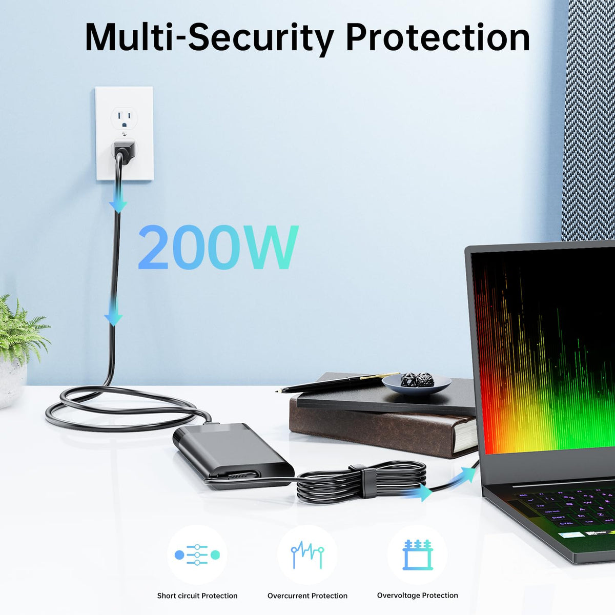 200W Omen Charger For Hp Victus 15 16, Hp Zbook 15 17, Hp Omen 15 17 Laptop Power Supply Tpn-Da10 Tpn-La21