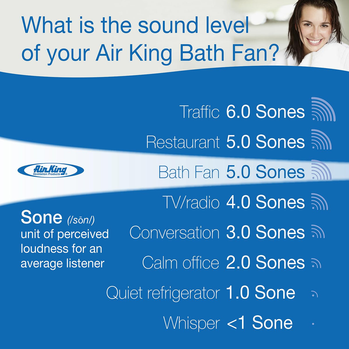 Product Descriptionair King'S Bfq140 From The Air King Bfq High Performance Exhaust Fan Fan Series Features A Unique Snap-In Installation System. The Included Bracket Nails Or Screws To The Ceiling Joist Allowing The Fan Housing To ''Snap-In''. Connect The Wiring And The Ducting, Install The Easy Fitting Grill And You Are Done. A Bath Fan Installation Can Now Be Done In Minutes. The Durable High Impact Plastic Housing Ensures Quiet Operation And Maximum Performance. High Performance, Attractive Stylized Grill And Quick Installation Make The High Performance Exhaust Fan Series Right For The Job. Ul Listed For Installation Over A Tub Or Shower On A Gfci Circuit Using 4'' Round Ducting. Motor Is Hvi Certified. Wire Nuts And Romex Connector Are Included. 120 Cfm At .1Sp. Operates At 4 Sones (Sones Is A Broader Measure Of Sound Than Decibels.) Exhaust Capacity 120 - 150 Sq. Ft.From The Manufacturerwhat Makes The Air King High Performance Bath Fan Series Unique Is The Ul Listed Molded High Impact Plastic Housing That Provides Multiple Benefits. ''Traditional'' Bath Fan Housings Are Fabricated From Steel Which Involves Bending And Welding. This Is A More Expensive Process And Over The Life Of The Fan Welds Can Break, Causing The Fan To Operate Much Louder Or Even With A Rattling Sound. Metal Housings Reverberate And Echo Noise. Because The Air King High Performance Bath Fan Series Is In An All Plastic Housing, There Are No Welds To Break And The Plastic Is A Natural Sound Absorbent Material. If You Live Anywhere Near Salt Water, Or The Unit Will Be Used In High Moisture Areas, This Fan Is An Almost Must. The Ul Listed Molded High Impact Plastic Housing Will Not Rust, Giving The Unit A Longer Life. The High Performance Exhaust Fan Series Features A Unique Snap-In Installation System. The 4-Inch Plastic Duct Collar With Back Draft Damper Insures Quiet Operation And Prevents Drafts From Entering The Room. Exhaust Capacity For Rooms Of Approximately 120 To 150 Square Feet. Housing Size: 9-1/8 Inch Wide-By-8-1/2 Inch Deep-By-4-3/ Inch High. Please Note That The Installation Vido On This Page Shows Model Bfq90 Which Looks The Same With The Same Design, Features And Installation Steps. The Only Difference Is The Motor Size. Quality Air King Products Are Always The Right Choice!