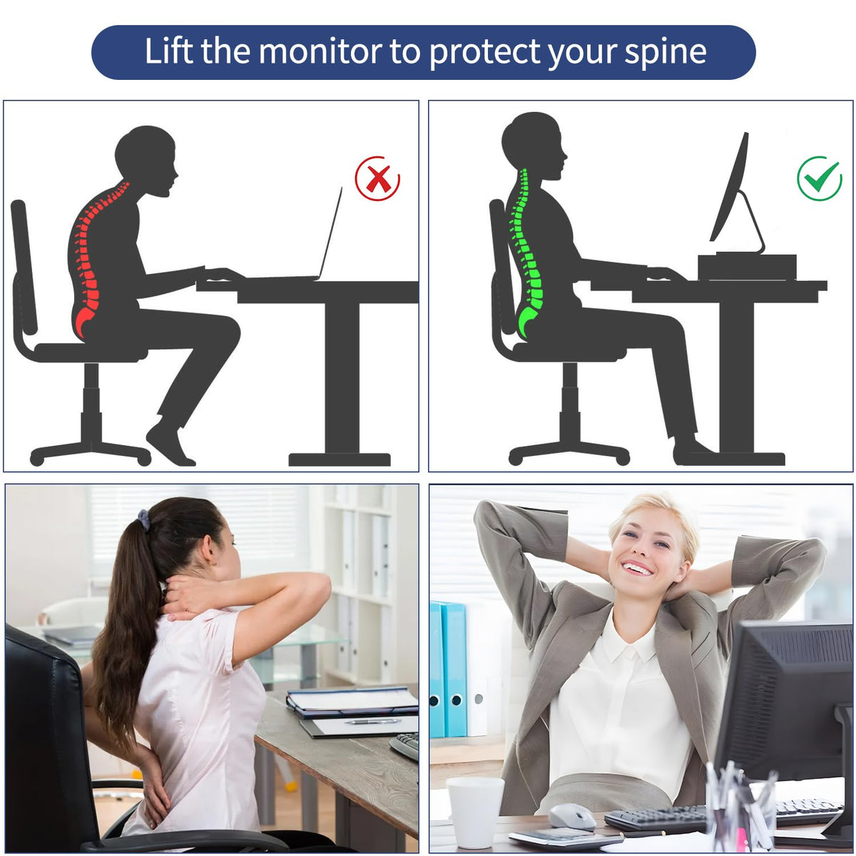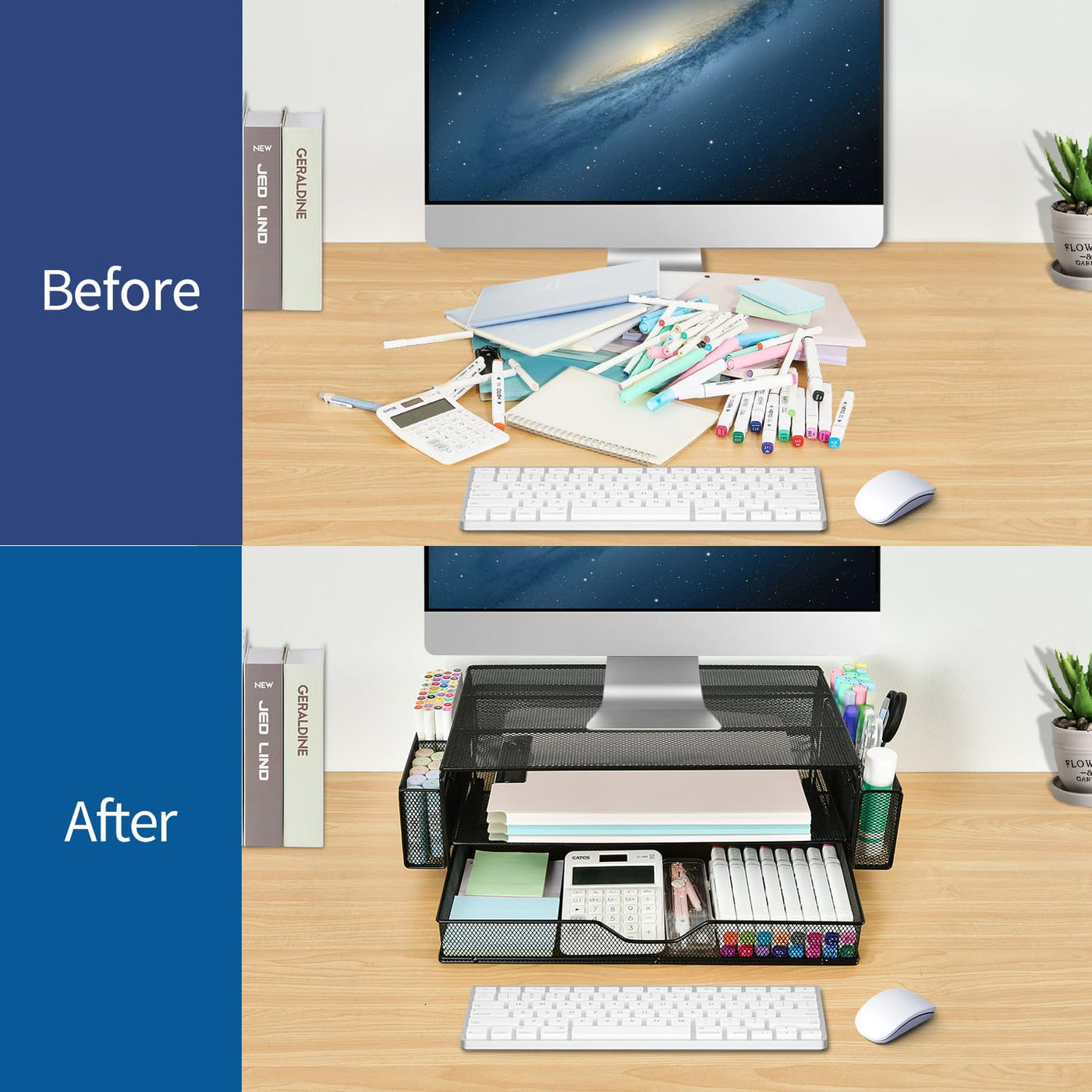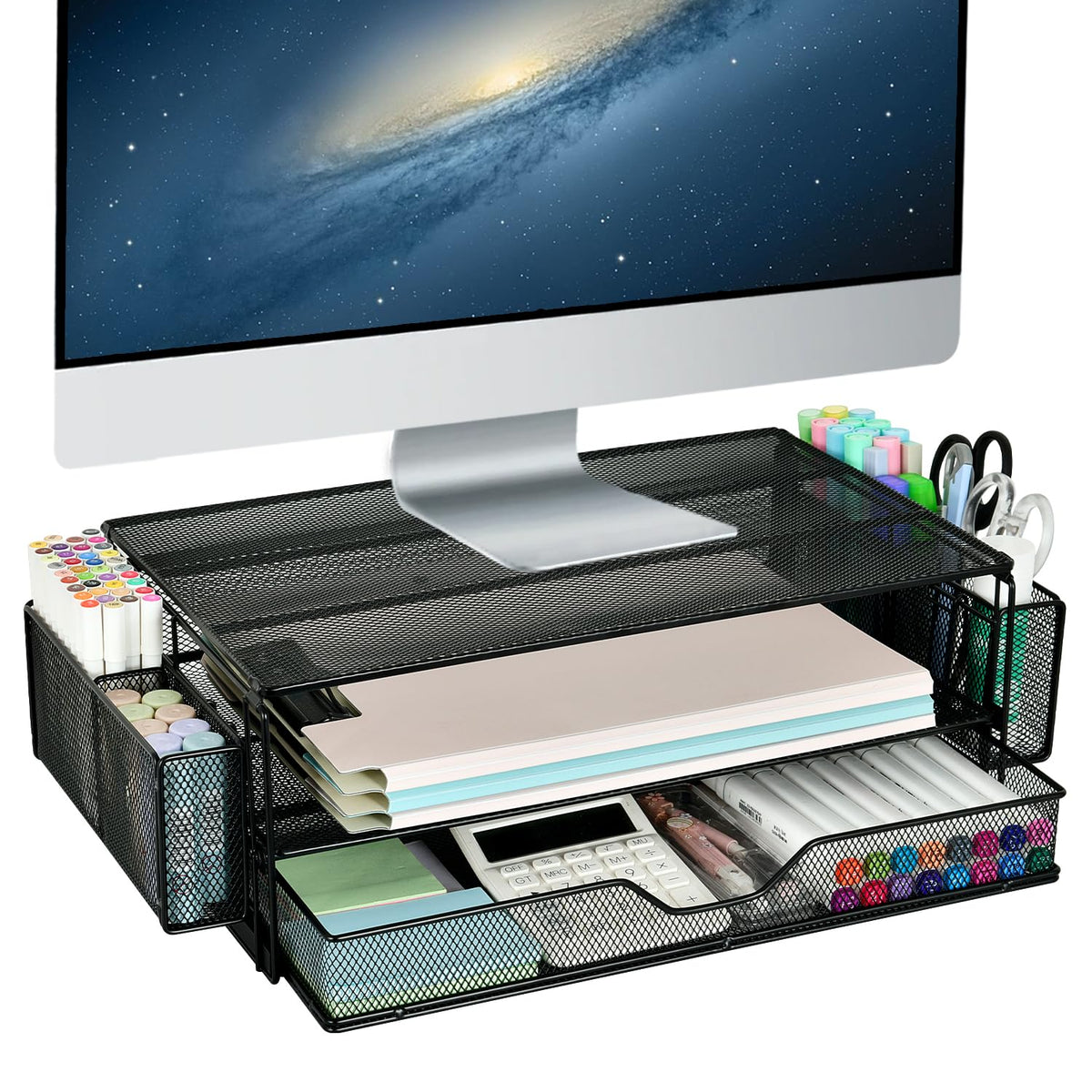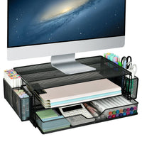 Aupsen 2 Tier Computer Monitor Stands With Drawer And 2 Pencil Holder, Metal Monitor Stand Monitor Riser, Computer Desk Organize