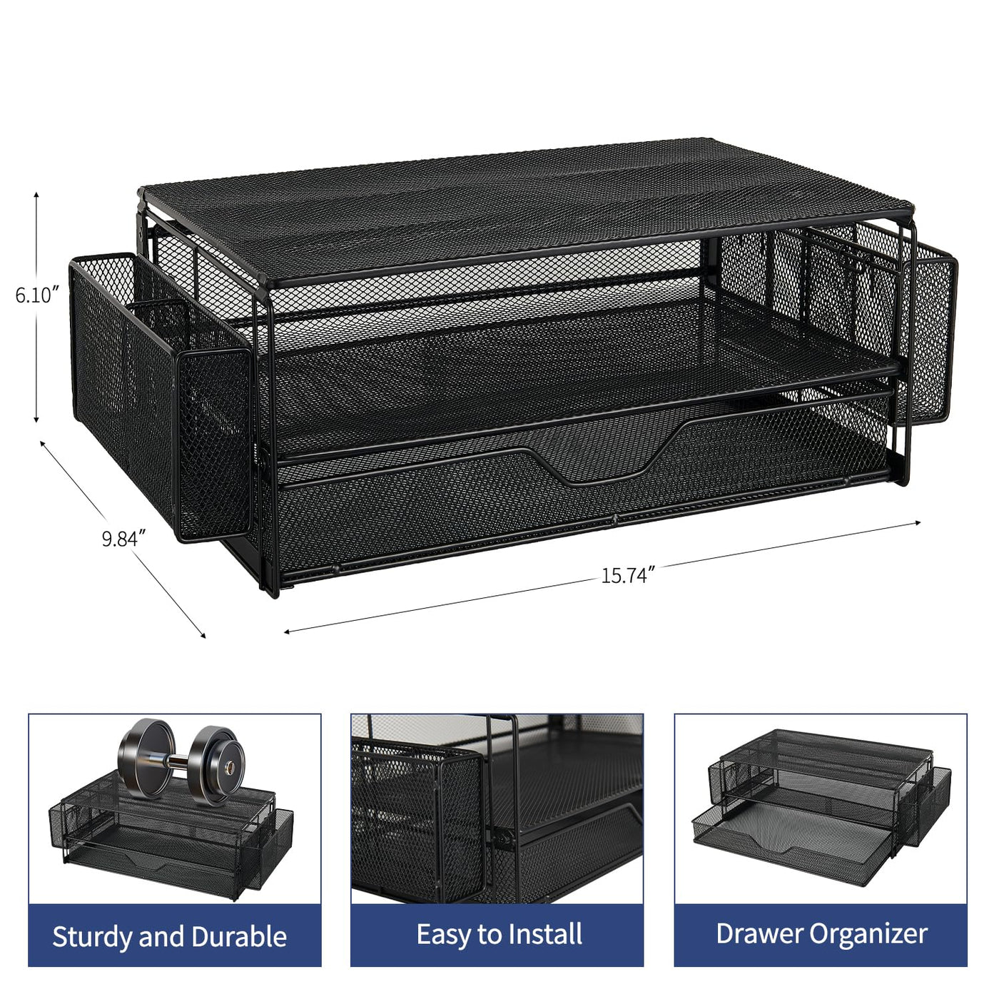 Aupsen 2 Tier Computer Monitor Stands With Drawers,Metal Monitor Stand Monitor Riser And Computer Desk Organizer With Drawer For Laptop, Computer,Black
