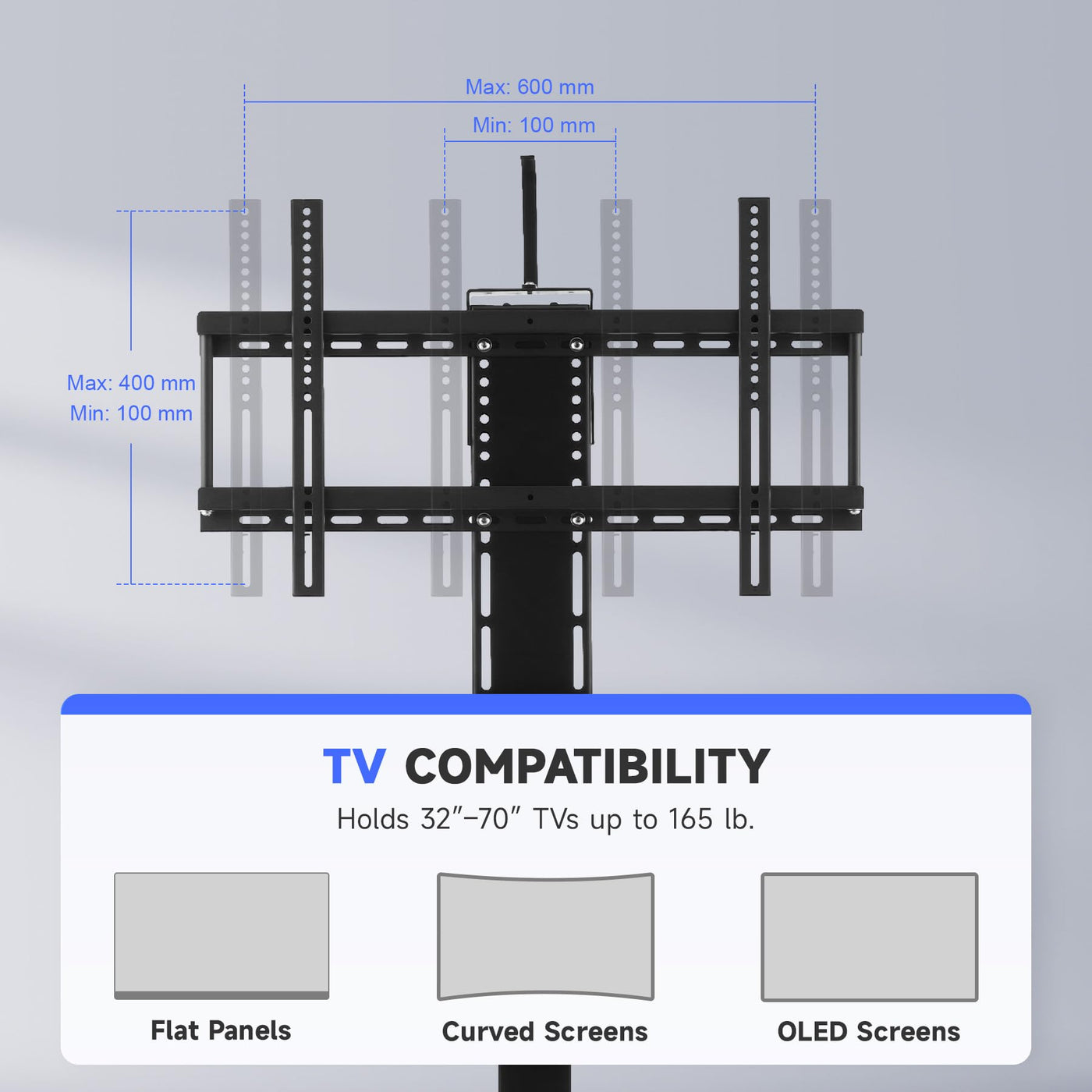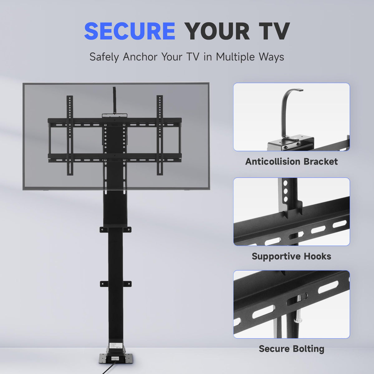 Co Z Motorized Tv Lift For 32'' To 70'' Tvs Up To 600X400 Vesa, Height Adjustable Tv Stand And Wall Mount With Remote Control An