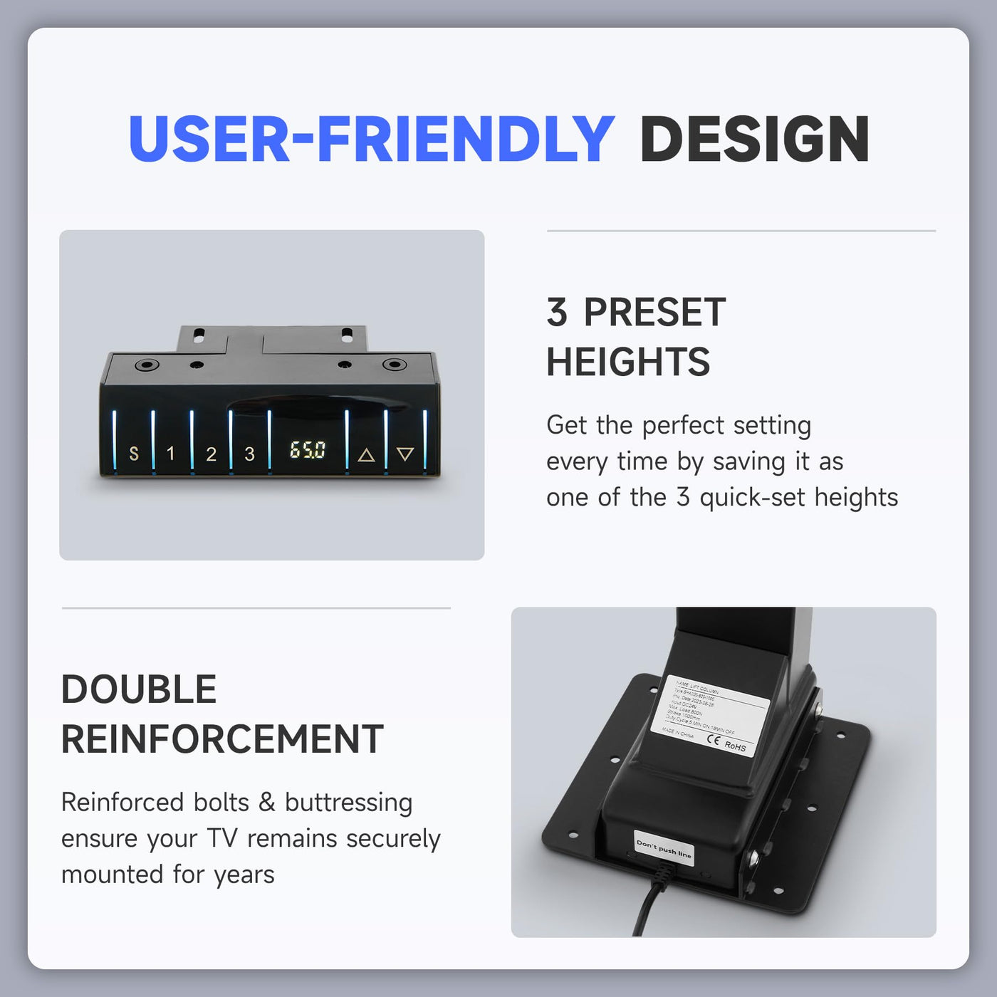 Co-Z Motorized Tv Lift For 32'' To 70'' Tvs Up To 600X400 Vesa, Height Adjustable Tv Stand And Wall Mount With Remote Control And Memory Setting, Automatic Lift For Home Office