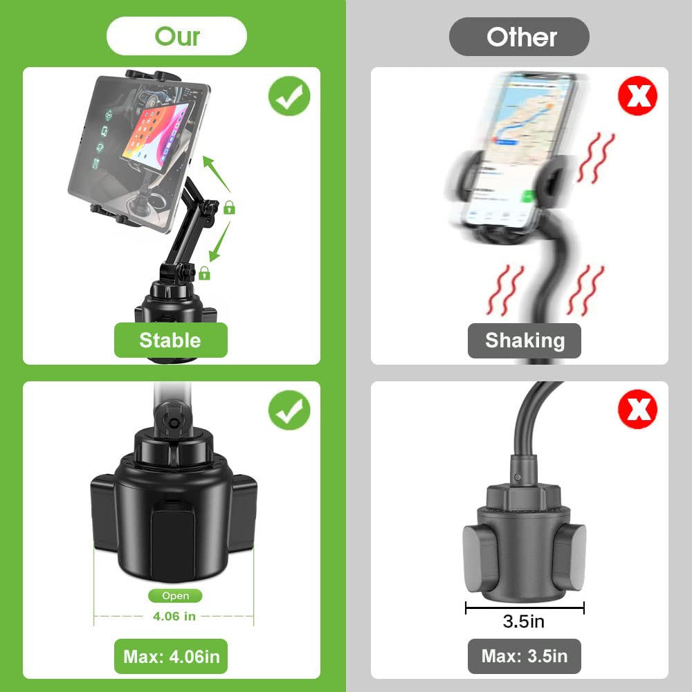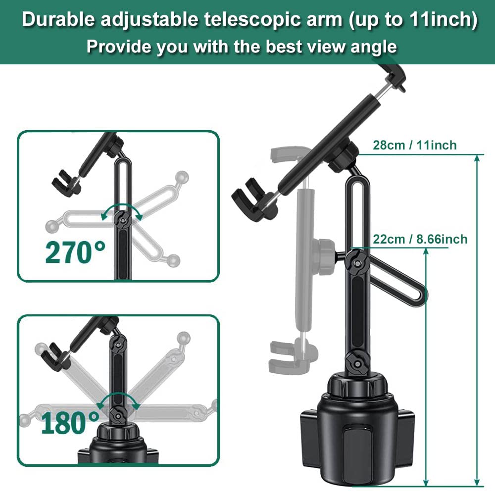 Cuxwill Car Cup Holder Tablet Mount for 4-13 Devices, Adjustable Arm for iPad Pro, Samsung Galaxy, Kindle Fire - Black, 31*14*7cm