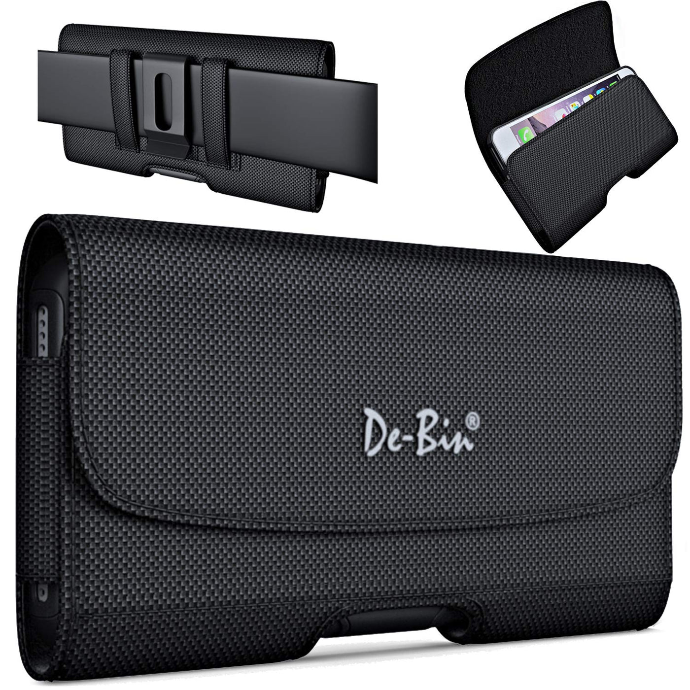 De-Bin Case For Iphone 15, 15 Pro, 14, 14 Pro, 13 Pro, 12 Pro, 12, 11, Xs, X Xr, Cell Phone Belt Holder Holster Case With Belt Clip Nylon Carrying Pouch Cover (Fits Iphone With Protective Case On) Medium Black
