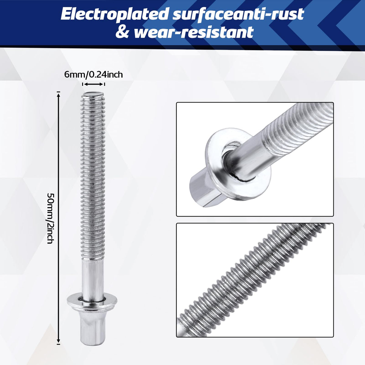 Dynwave 6Pcs Silver 2 Inch Drum Tension Rods For Tom Snare Drum Build Accessories