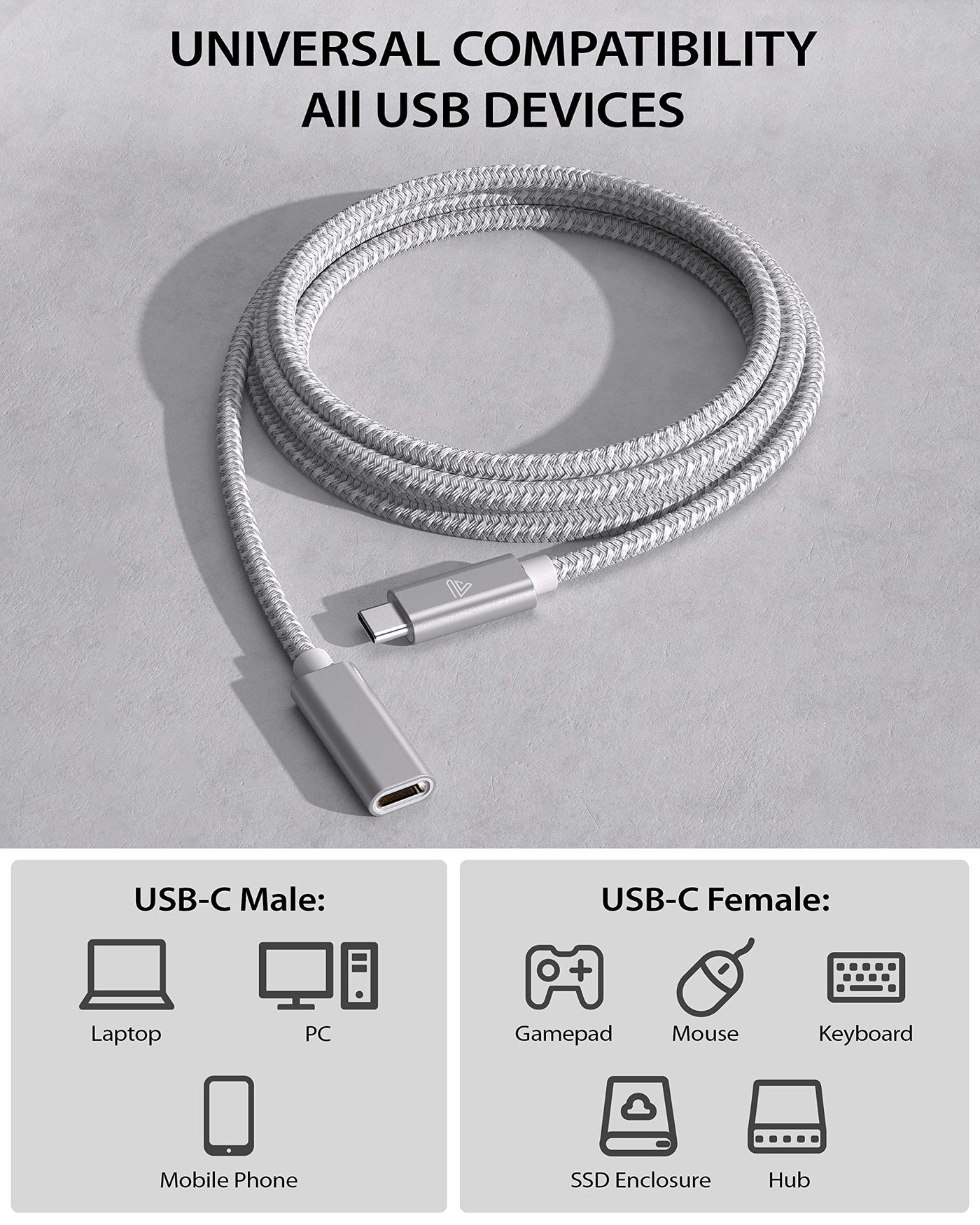 Faracent Usb C Extension Cable (3.3Ft/1M), New Version Usb 3.2 (10Gbps) Type C Male To Female Extension Charging & Sync For Docking Station, Macbook Air M2/ Pro, Dell Xps Surface Book Silver