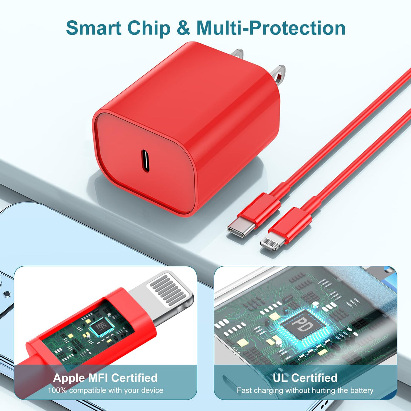 Hcoob Iphone14 13 12 Charger, [Mfi Certified] 6Ft Long Type C To Lightning Cable Fast Charging, 20W Usb C Fast Charger Block For