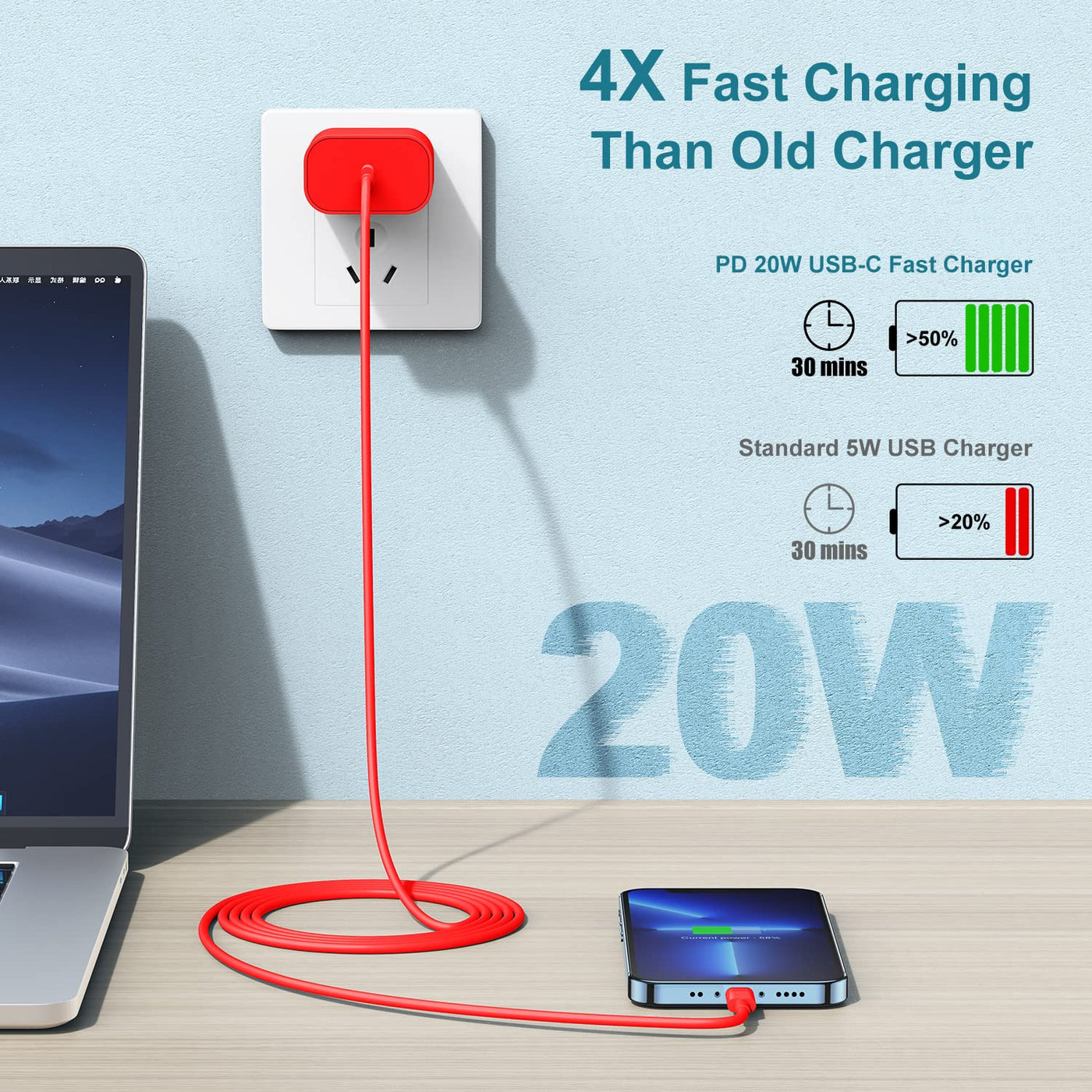 One Charger, Lifetime Service :At Hcoob, You Don'T Have To Worry About After-Sales Problems, If You Have Any Problems With The Product, Please Let Us Know At Any Time, We Will Give You A Satisfactory Solution, We Have Confidence In Our Products And We Are Responsible To Customers | 6Ft Long Lightning Cable :The Iphone Charger Sets Includes 2*6 Foot Type C To Lightning Cable And Usb C Fast Charger, Which Can Charge Your Multiple Lightning Devices And The Charging Speed Is Up To 3A. Let You Spend Less Time Used For Charging And Have More Space For Activities When It Charge. Quick Connect And High Speed Data Transfer Speed Up To 480Mb/S Helps You Work Efficiently. 2Pack Of Multiple Options, You Can Share It With Family And Friends | Orginal Iphone High Speed Charger :Equipped With Usb C Power Delivery Port, Pd 3.0 Quick Charge Usb C Port Provides Max 20W Output Power , Latest-Generation, Future-Proof Fast Charging Technology, No Error Message Pops Up And Works Perfectly With Your Device While Charging Fast, 4X Faster Than Regularly Chargers | Applicable Lightning Equipment :100% With For Iphone14/14 Pro/14 Pro Max/Iphone13/13 Mini/13 Pro/13 Promax/Iphone 12/12 Mini/12 Pro/12 Promax/Iphone 11 Promax/ 11 Pro/11/Iphone Xs/ Xs Max/ Xr/ X/Iphone 8 Plus/ 8/Iphone Se 2020/Ipad At Fast Speed , And Charges For Iphone 7Plus/7/6S Plus/6S/6Plus/6/5S/5/Se At An Original Charging Speed. It Also Works With Other Usb C Devices | Usb C Fast Charger,Safety Assurance :Hcoob'S Ucb C Fast Charger Built-In Safety Protection, Which Can Monitor Temperature And Voltage In Real Time, Maximize The Protection Of Your Device. The Charger Has A Smart Chip Inside That Actively Adjusts The Power Output According To The Needs Of The Device. As The Battery Is Fully Charged, The Charging Speed Will Be Slower To Give The Battery Time To Absorb The Charge And Prevent The Battery From Rupturing
