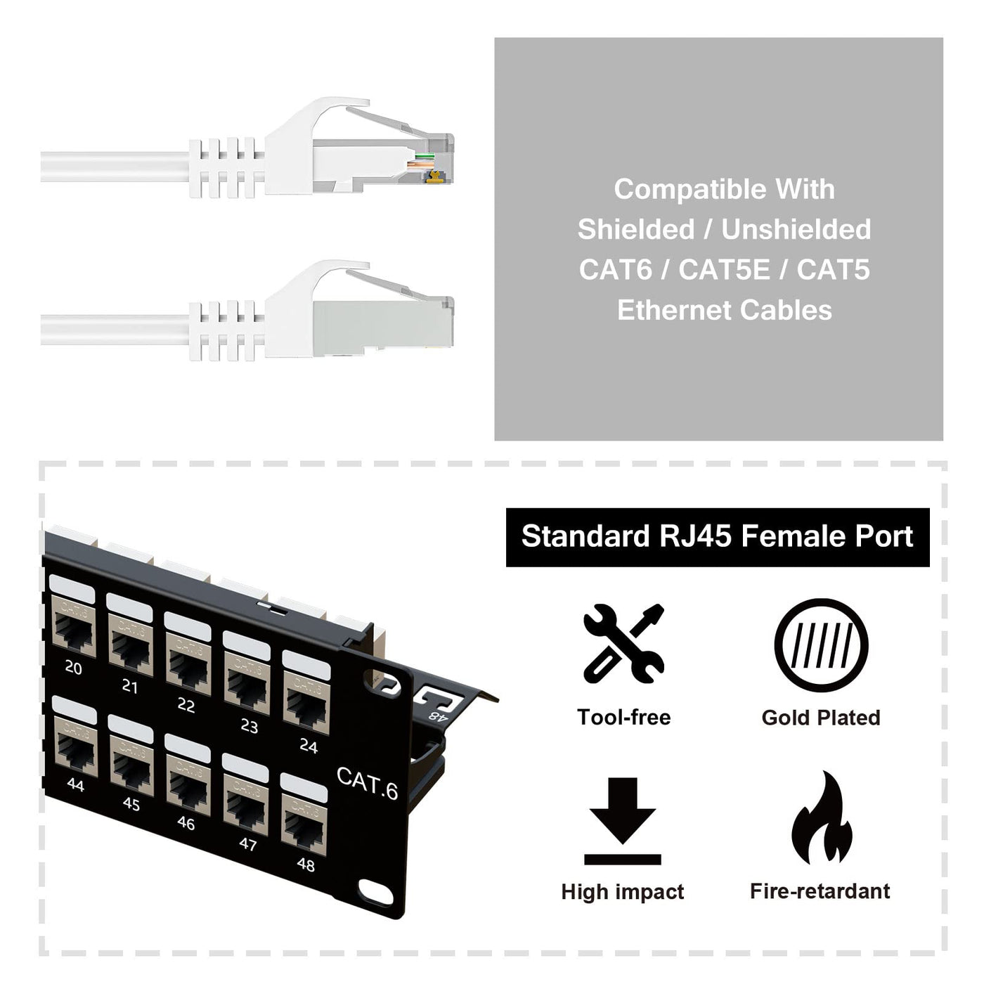 Iwillink Patch Panel 48 Port, Rj45 Through Coupler 2U Cat6 Shielded Patch Panel Stp 19-Inch With Back Bar, Wallmount Or Rackmount, Compatible With Cat5, Cat5E, Cat6 Cabling