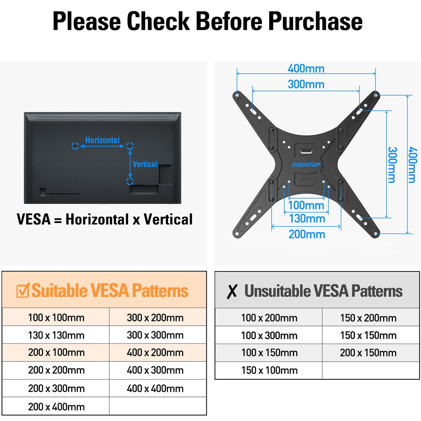 Wall Type: This Tv Mount Is Suitable For Wood Studs (No Need Anchors), And Concrete And Brick Wall Installation. Please Note: It Can Not Be Mounted Onto Drywall Alone. What Is This Tv Mount Feature? Level Adjustment: +/-3 Tilting Adjustment: +5/-15 Extend & Retract : From 2.6 To 37.4 From The Wall Swivel Angle: Normal +/-90 (Depends On The Tv Size)