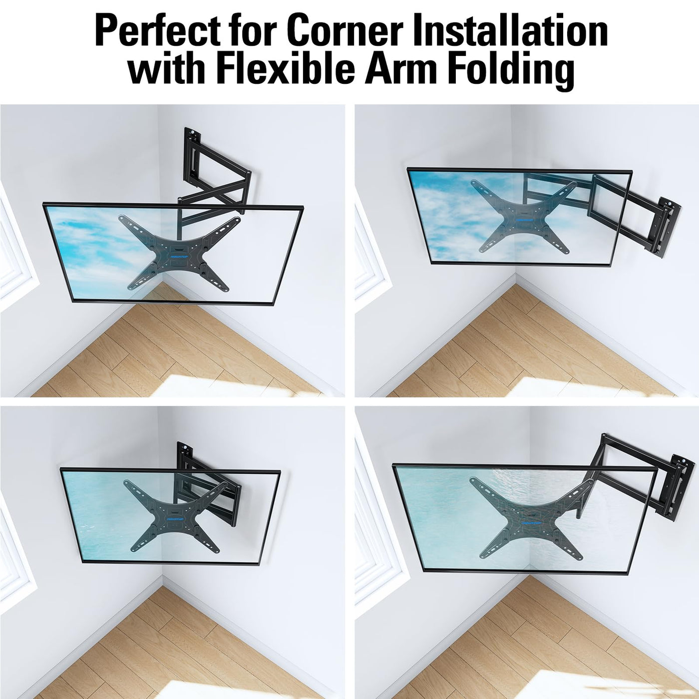 Mountup Long Arm Tv Wall Mount For Most 26 65 Inch Tvs, Corner Tv Mount With 37.4 Inch Extension Arm, Smooth Swivel Tilt Single