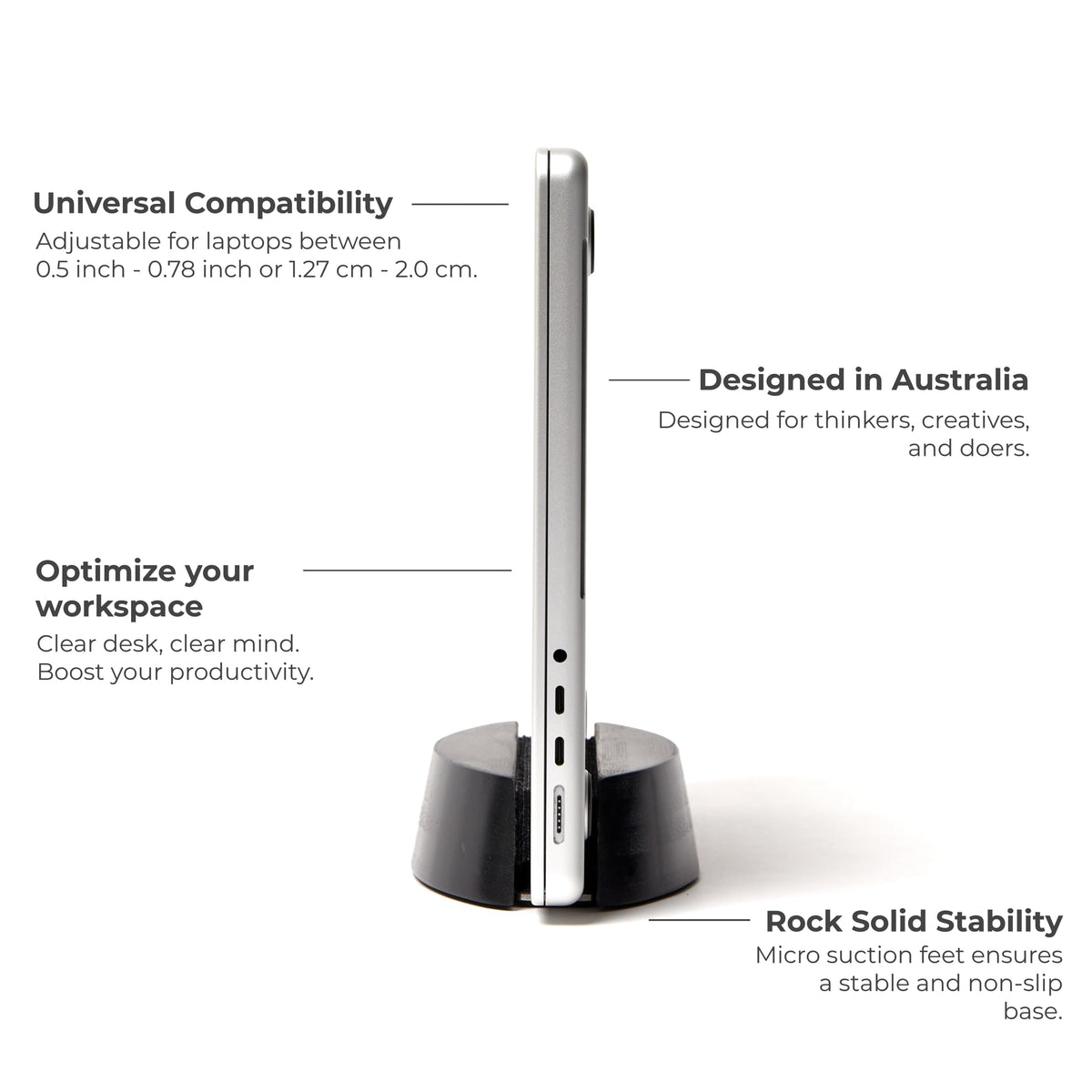 Nordik Vertical Laptop Stand Black Premium Laptop Dock And Holder For Home Office, Software Engineers Space Saving Desk Do