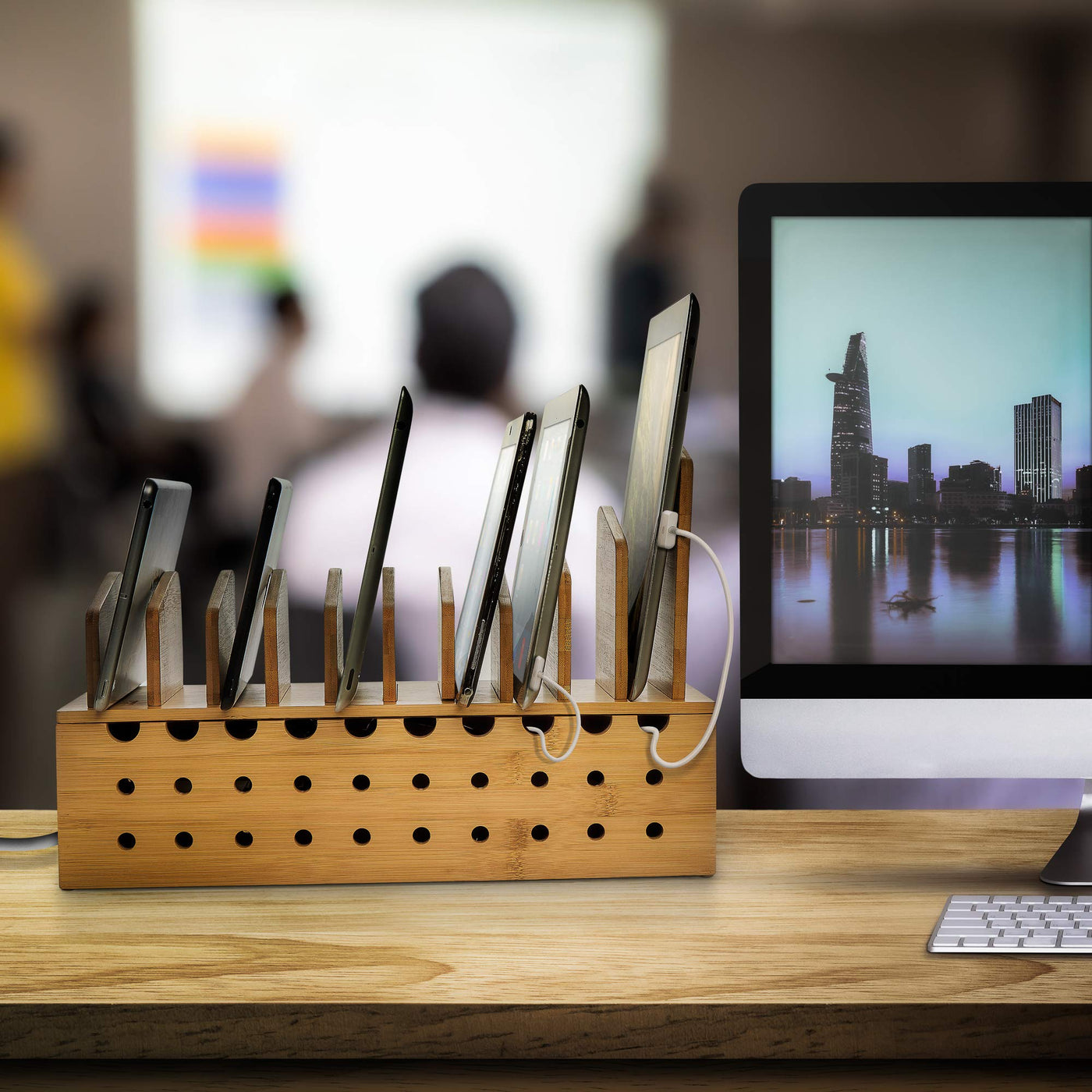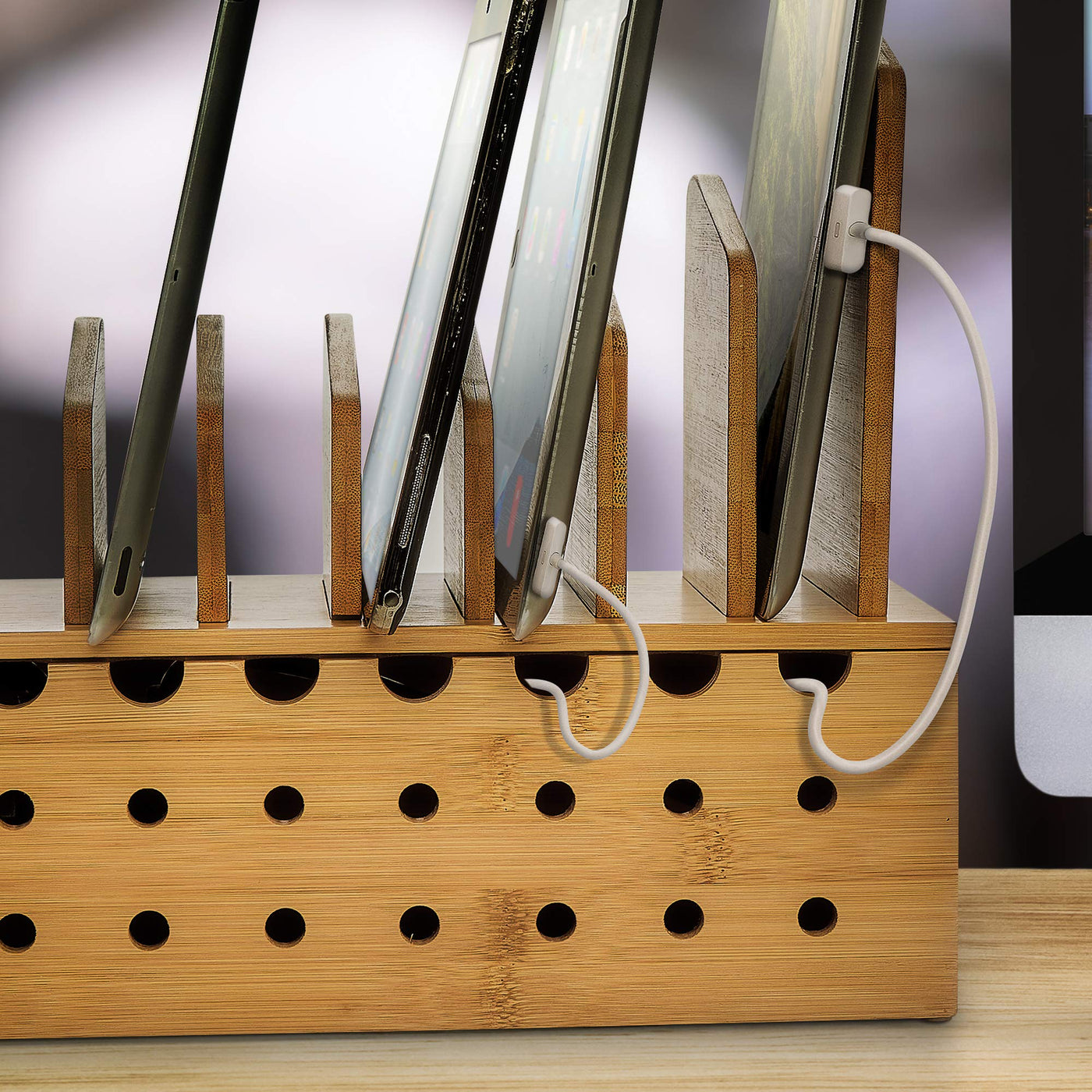 Prosumer'S Choice 10 Device Bamboo Cell Phone Charging Stations Dock | Clutter Organizer/Charging Stand For Multiple Devices | D
