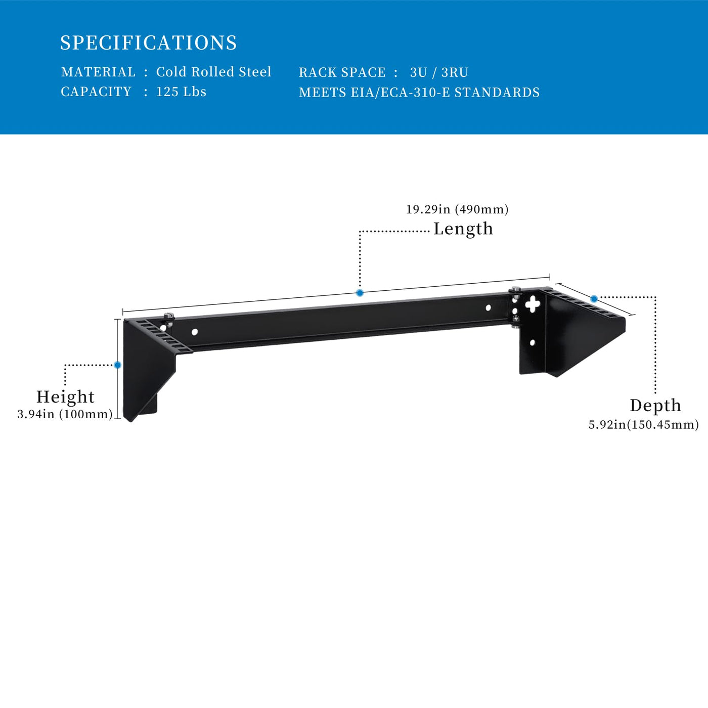 Rackpath 3U Vertical Wall Mount Rack Heavy Duty 125Lbs Capacity Vertical Mounting Bracket (3U)
