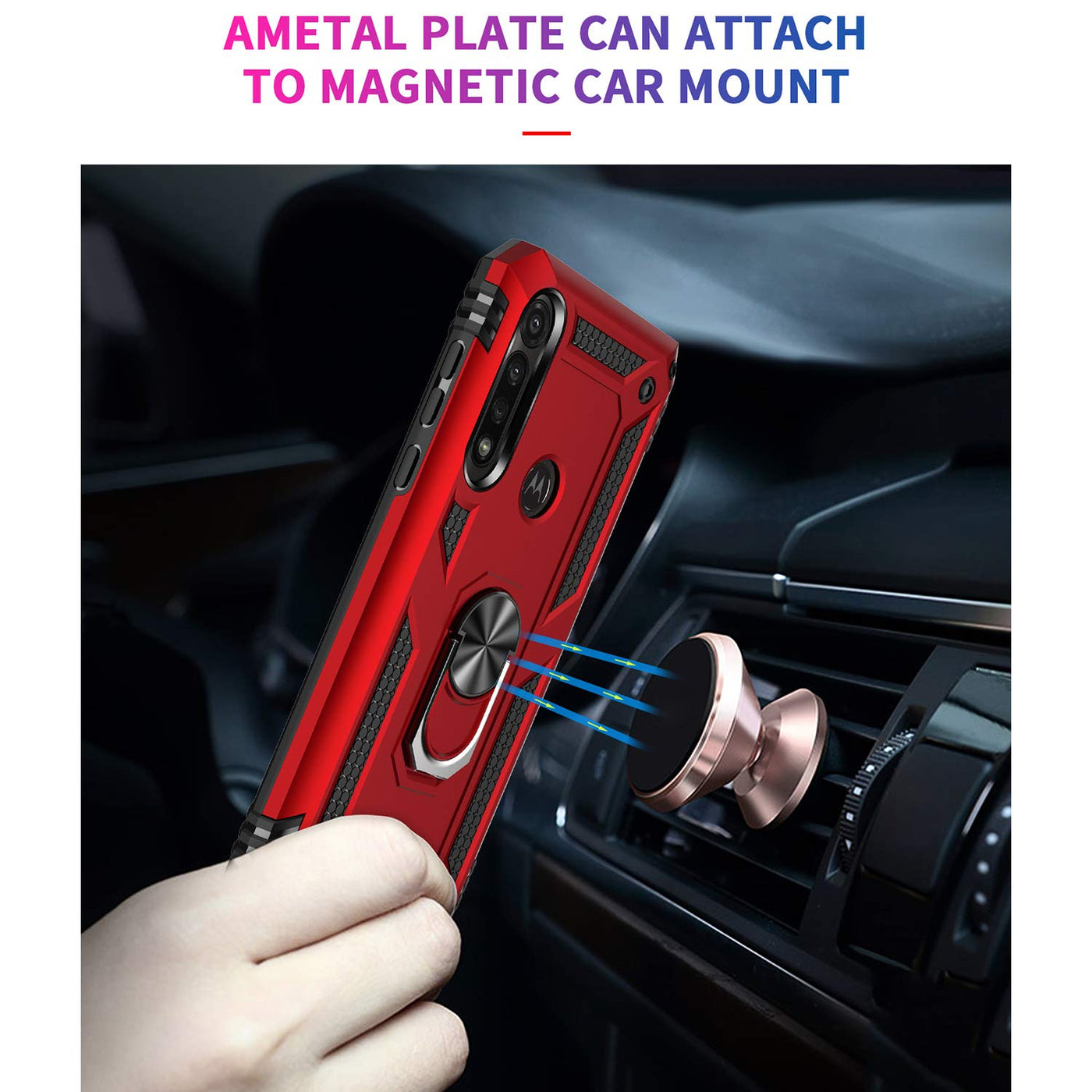 Tjs Compatible With Motorola Moto G Power (2020) Case, With [Tempered Glass Screen Protector] Defender Metal Ring Magnetic Suppo