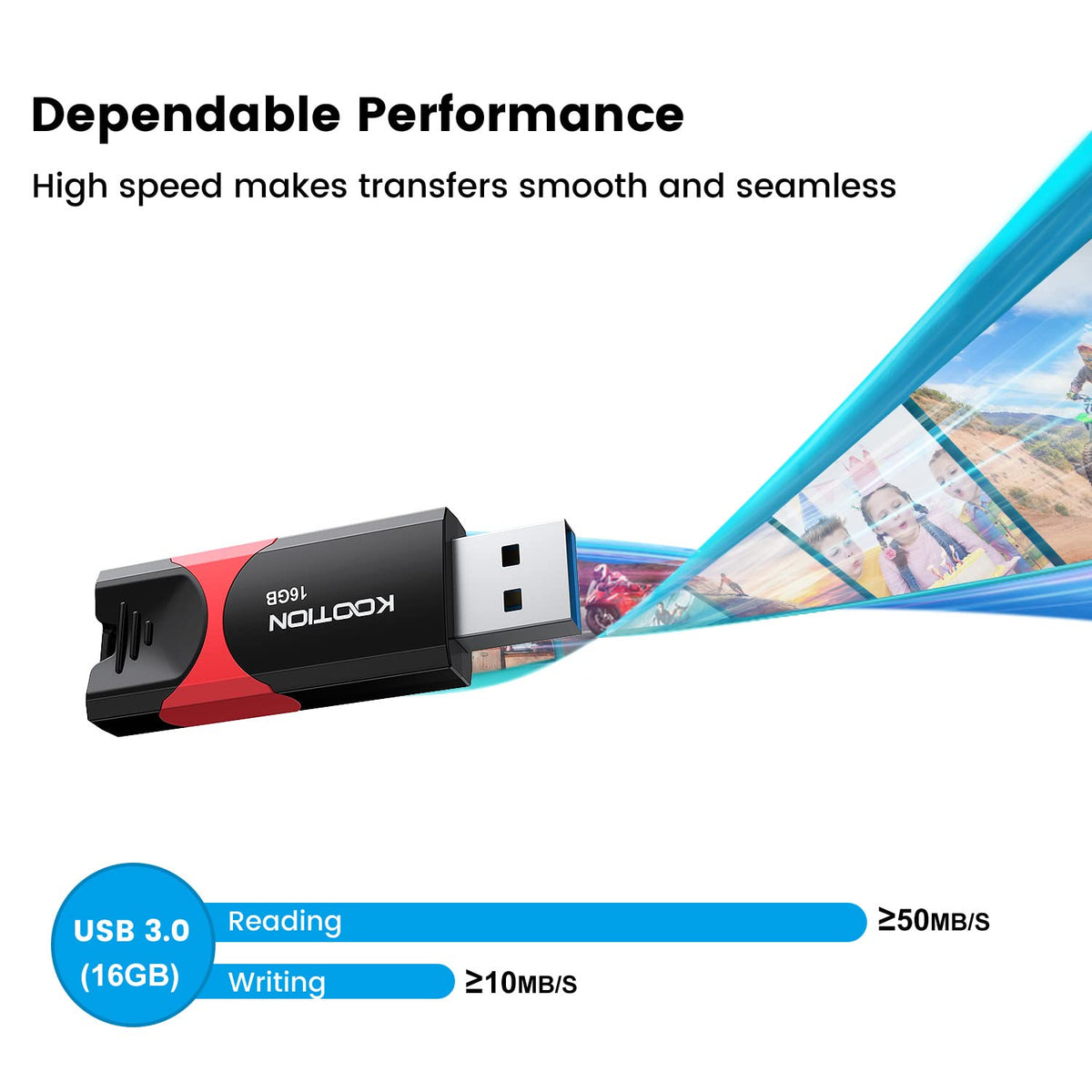 Usb 3.0 Ultra High Speed: This 16Gb Usb Flash Drive Features Usb 3.0 Technology Boosting Speed (Read Speed = 50Mb/S Write Speed =10Mb/S)10X Faster Than Usb 2.0 Thumb Drives, Greatly Shortening Data Storage And Transfer Process | Reliable & Durable: The Usb Memory Stick Adopts Grade-A Chips And Global Top 3 Flash Memory Particles, Safeguards Your Data And Transfers Your Data Seamlessly. Quicker Heat Dissipation Permits Longer Service Life | Retractable Design: The Slide In/Out Design Makes This Thumb Drive Convenient To Use And Protects The Connector From Damage. This Pen Drive Can Be Attached To Keychain Or Backpack Via The Integrated Lanyard Hole, Keeping Your Digital World Close By | Plug And Play: No Driver Needed.The Usb 3.0 Flash Drive Supports Windows, Mac, Android, And Linux Systems, Can Be Used On Pc, Mac, Laptop, Printer, Projector, Car Audio, Game Console, Smart Tv, Etc., Compatible With Usb 2.0/Usb 1.1 | By Default The 16 Gb Flash Drive Is Formatted As Fat32. Actual Available Capacity For Data Storage Is Less Than As Listed On The Products Due To Different Capacity Algorithms And Partial Capacity Are Used For System Files. 1Gb=1,000,000,000 Bytes
