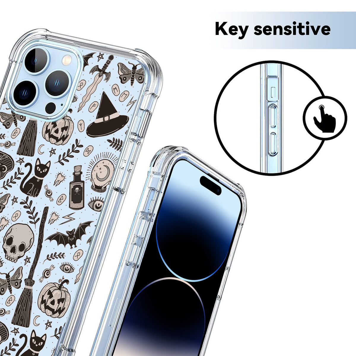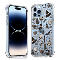 Vesidurt Black Halloween Clear Case For Iphone 14 Pro Max,Pumpkin Skull Bat Pattern For Men Women,Trendy Transparent Soft Tpu Bu