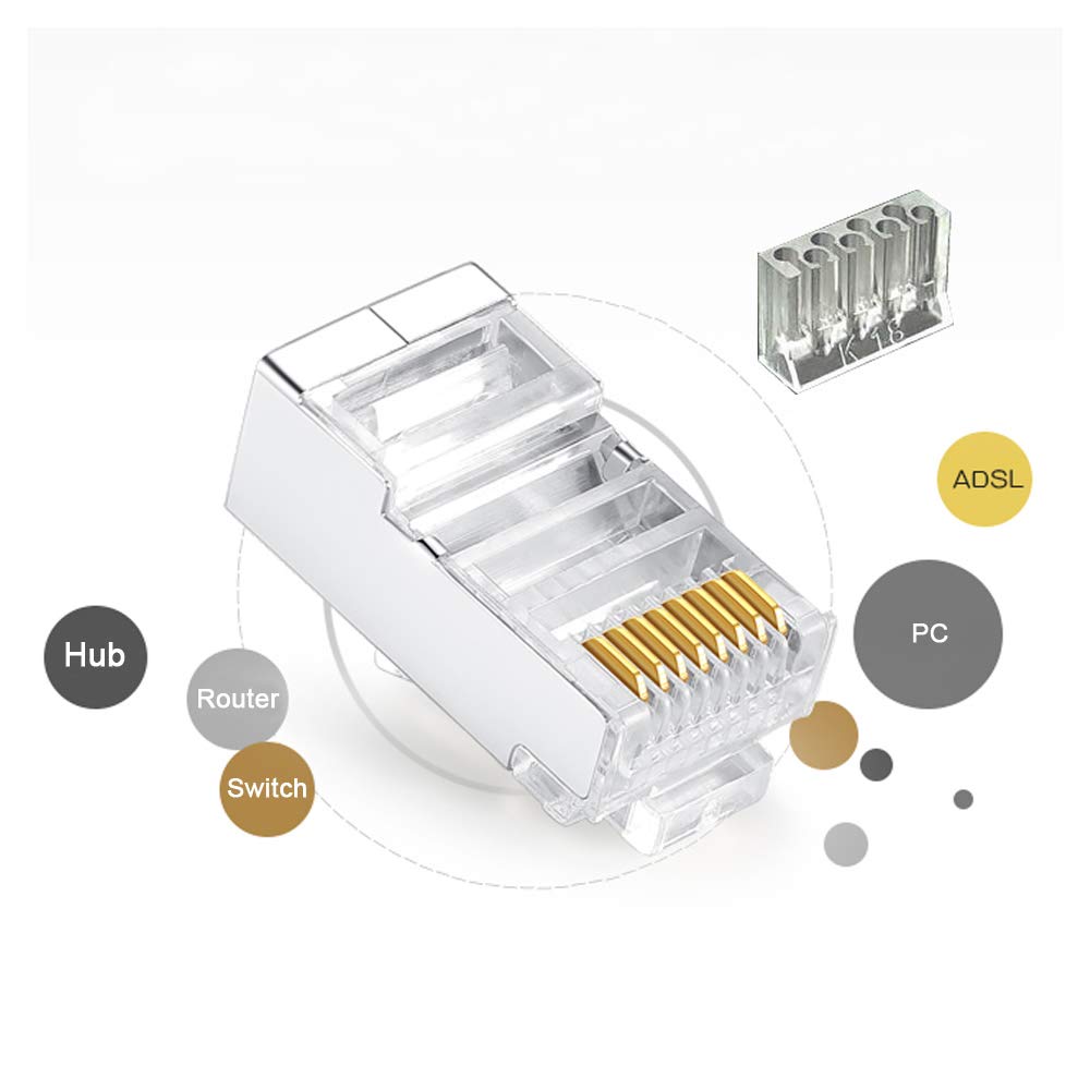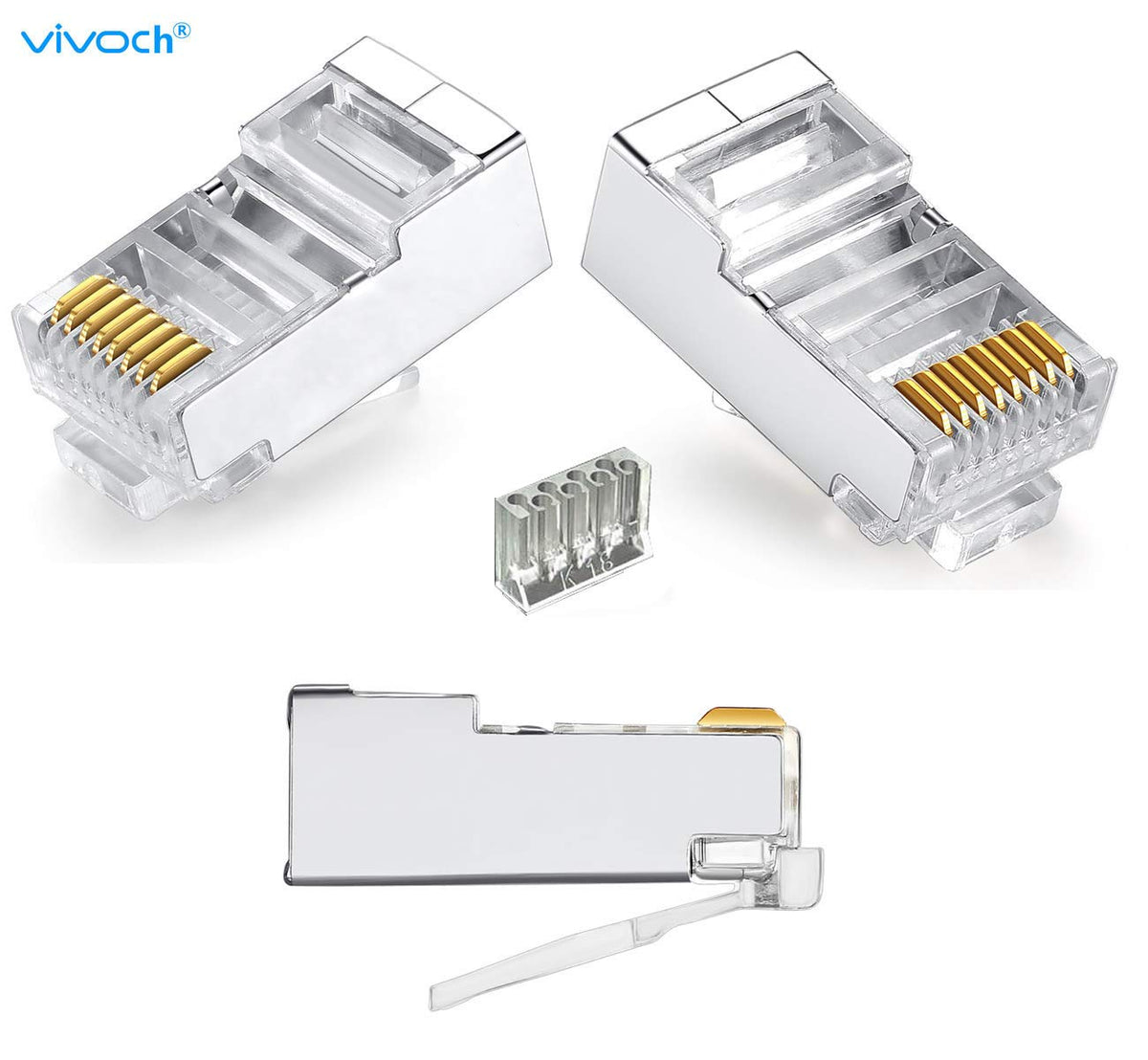 Product Features: 1. 'Vivoch' Cat6 Rj45 Shielded Lan Network Plug Connector. 2. Pass The Strict Test Standard: Permanent Link And Channel Mode Test. 3. Compatible To Cat5, Cat5E, Cat6 Rj45 Sockets. 4. In Line With International Standards, 100% Test Approved. 5. Tia/Eia And Iso Certification Approved 6. Compatible To Both T568A And T568B Wiring Schemes. 7. Apply To Switch, Wireless Device, Modem, Hub, Adsl, Pc, Tv, Digital Device.