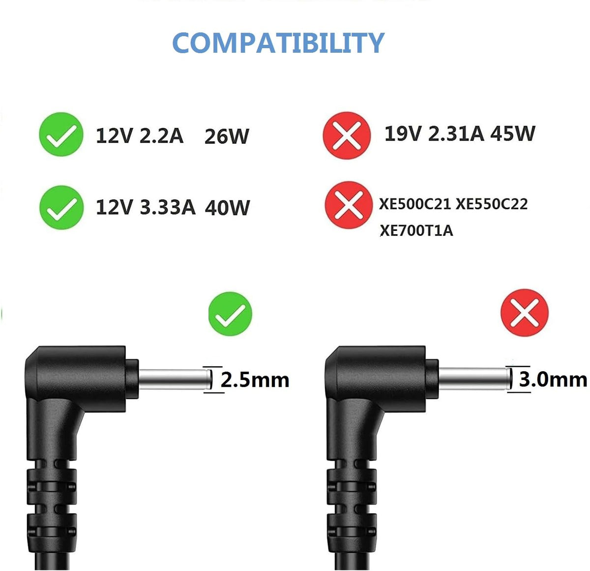 Zozo 40W 12V 3.33A 12V 2.2A 26W Charger For Samsung Chromebook 2 3 303C 500C 501C 503C Xe303C12 Xe500C12 Xe500C13 Xe501C13 Xe503C12 Xe503C32 Np930X2K Ativ Book 9 Power Ac Adapter Pa 1250 98