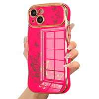 Ztofera For Iphone 15 Case For Girl Women, Cute Curly Wave Frame With Luxury Plating Butterfly Pattern, Soft Tpu Electroplated E
