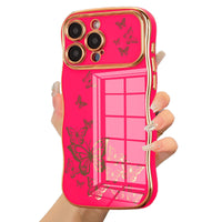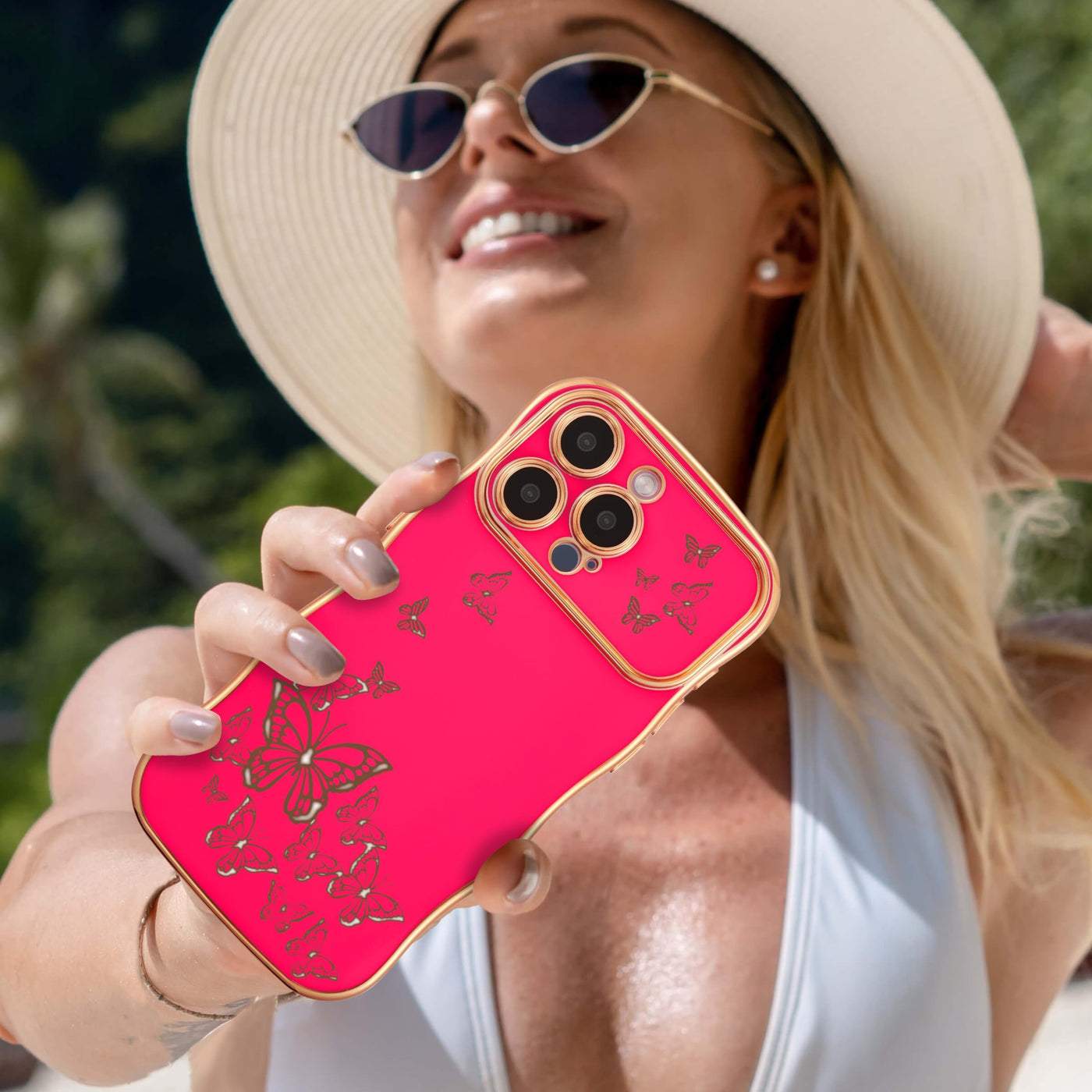 Ztofera For Iphone 15 Pro Case For Girl Women, Cute Curly Wave Frame With Luxury Plating Butterfly Pattern, Soft Tpu Shockproof