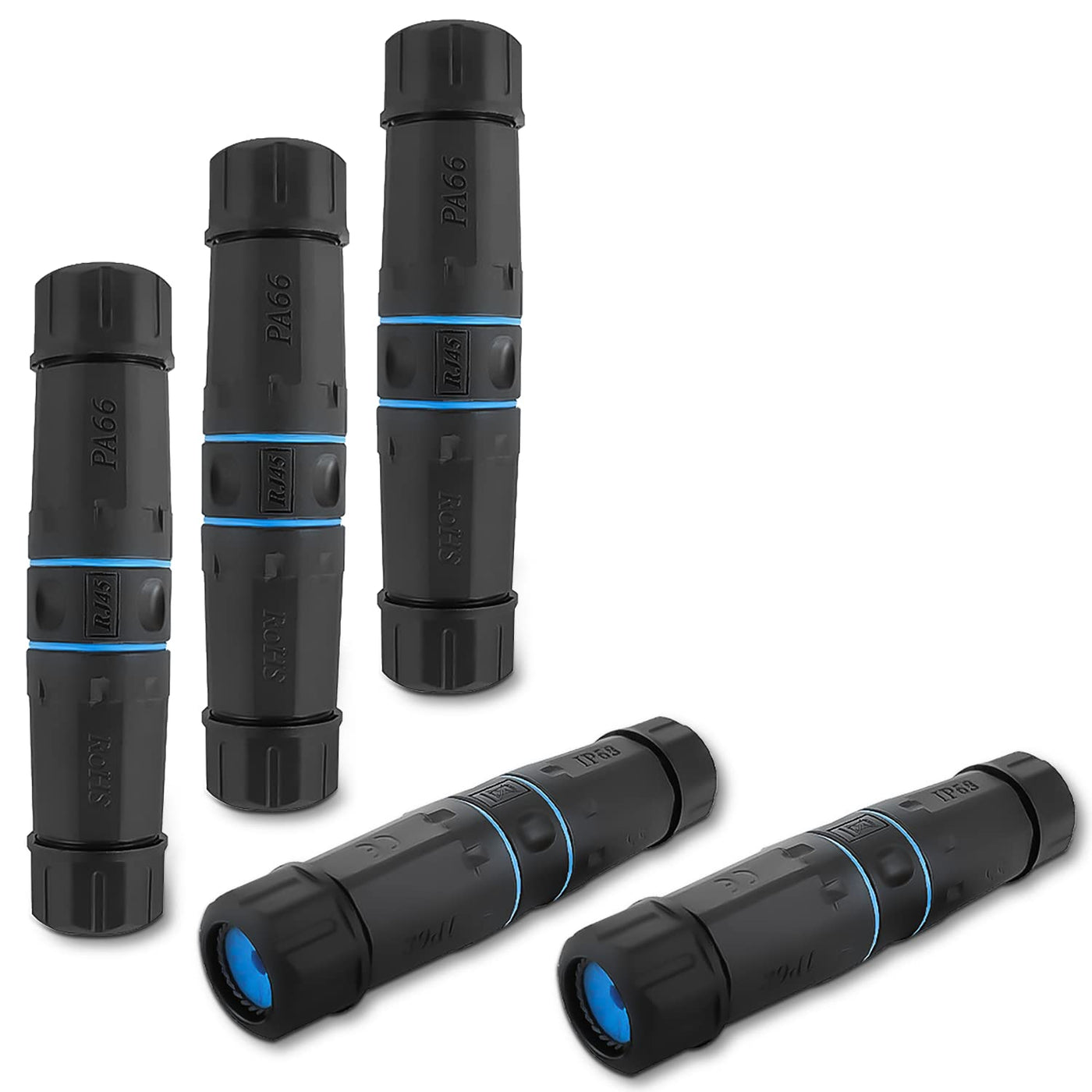 Zuzong Ip68 Waterproof Rj45 Coupler Shielded Pure Copper Waterproof Ethernet Coupler Waterproof Outdoor Lan Cable Connector For Cat5/ Cat5E/Cat6/Cat7/Cat8 Ethernet Cable (Black 5 Pcs Female)