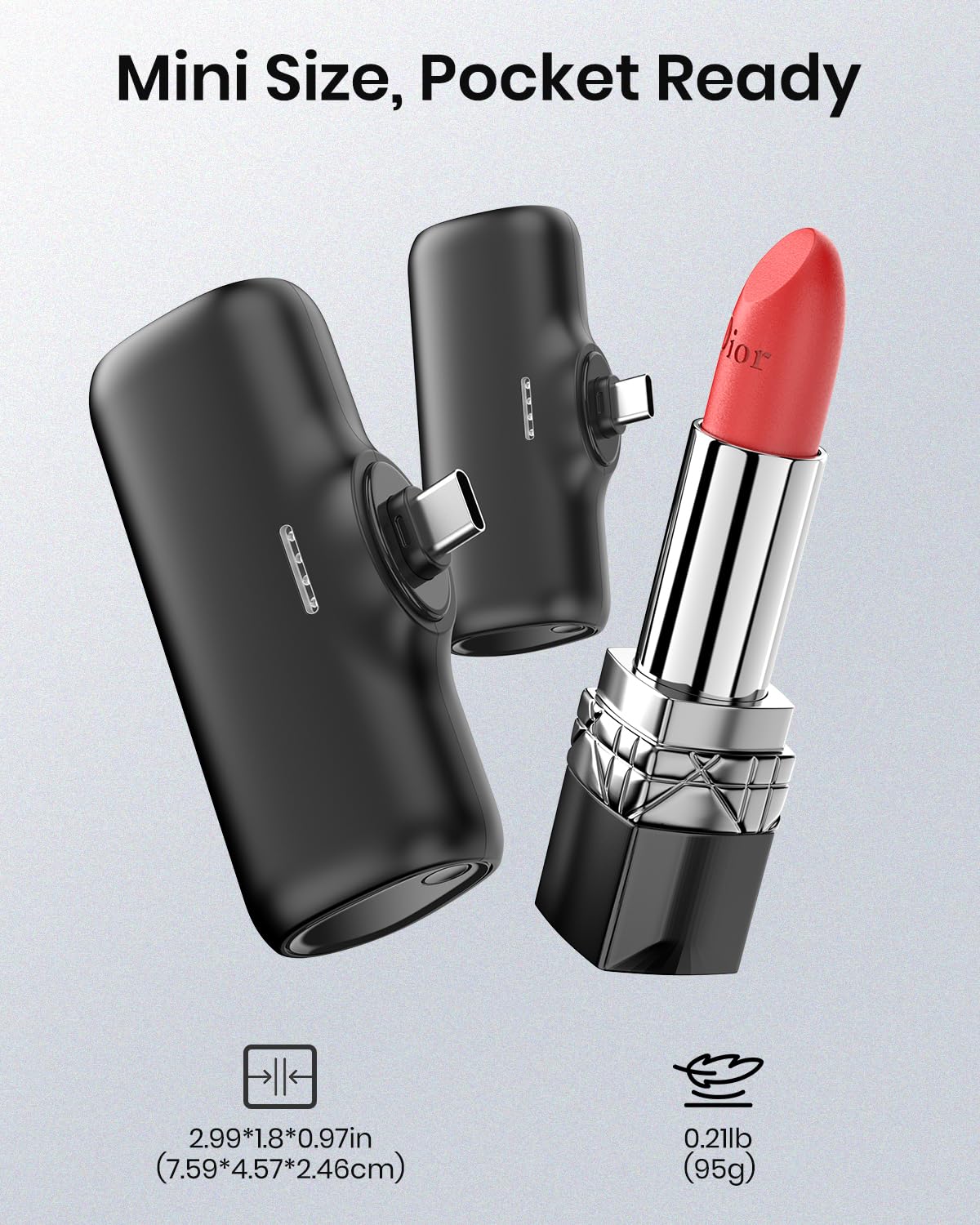This Portable Charger Is Designed For Usb-C Devices, Including Iphone 16/15 Series, Galaxy, Moto, Lg, And Other Android Phones. Compact And Lightweight, Its As Small As A Lipstick, Perfect For Travel, It Easily Fits In Your Pocket Or Bag. Equipped With 15W Fast Charging, It Can Charge Your Phone From 15% To 65% In Just 30 Minutes, Three Times Faster Than Ordinary Chargers. The Built-In 5000Mah Battery Powers Your Phone 0.8-1.5 Times, Meeting Daily Charging Needs. With A Built-In Usb-C Connector, Theres No Need To Carry Extra Cables.