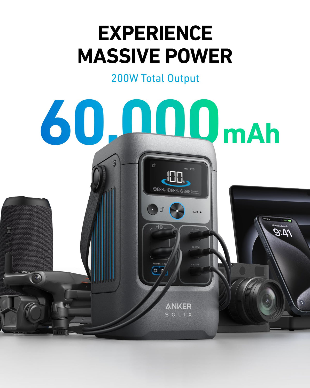 Anker Solix C200 Dc Power Bank Station (60,000Mah), 192Wh Portable Power Station, Lifepo4 Battery, 200W Solar Generator, For Out
