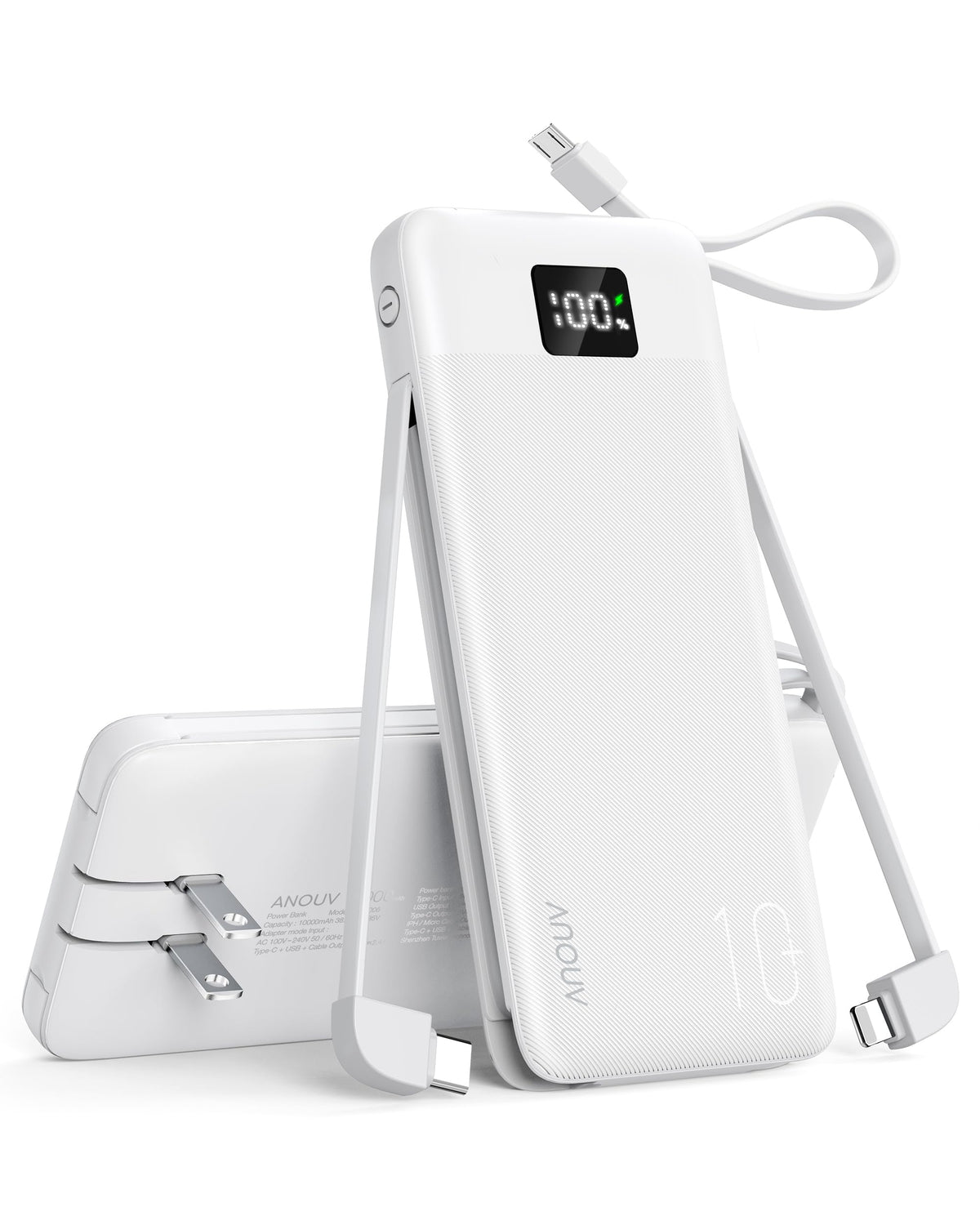 ?? Seven In One:Anouv Portable Charger With Built-In Usb C & Micro And Other Three Cables Are Compatible With Apple, Android, Type-C And All Smart Devices.Lcd Display Shows The Remaining Battery Visually,The Built-In Ac Wall Plug Allows You To Recharge Directly From The Wall Outlet,Worry-Free To Forget Carrying Any Extra Wall Charger And Cables,Enjoy Your Travel! | ?? Pd 22.5W Fast Charging&For Multiple Devices:Our Power Bank Up To 22.5W Fast Charging,This Portable Phone Charger With With 5 Outputs,3 Cables Outputs Charging And Additional Usb C And Usb A Outputs,It Supports 5 Devices Charging Max Simultaneously.Two Ways Quick Recharge,Portable Charger With Wall Plug&Type-C Quick Full Recharge. | ??Ultra Slim&Big Capacity: The Slim Battery Pack Charger Portable Has A Compact Only 5.76 Inch * 2.72 Inch * 0.68 Inch,And 230G Weigh,10000Mah Big Caacity,It Can Be Easily Put In Your Pocket Or Travel Bag And Suitable For Airplane Travel Or Outdoor Activity That Brings You The Best Experience On The Go. | ??Wide Compatible : Perfect Portable Phone Charger Compatible With Iphone 15 Pro Max,15 Pro, 15,14 Pro Max, 14 Pro, 14, 13 Pro, 13, 12 Pro, 12, 11 Pro Max, 11 Pro, 11, Xs Max, Xs, X, Xr, Se,Ipad Pro 2021/2020, And It With Type-C Cord For Android Compatible With Samsung S23, S22, S20, Note 20,Google Pixel, Tablets.Battery Pack Support Low-Current Charging Can Also Work With Smaller Devices Like Bluetooth Headphones, Airpods, Fitness Trackers, Smart Watches, Etc | ??Excellent Service - You Can Get 1X 10000Mah Power Bank,1X Manual. If You Have Any Problem, Free To Contact Us. We Will Solve Your Problem Within 24 Hours.