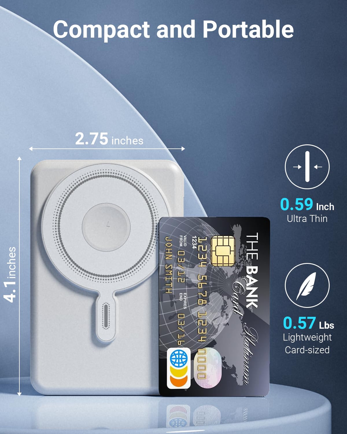 Introducing The Ultimate Power Solution For All Your Charging Needs! Our Magsafe Portable Charger Is A Versatile 5-In-1 Power Bank That Works Seamlessly With Your Iphone, Airpods, And Even Your Apple Watch, Making It The Perfect Companion For All Your Ios Devices. With A Massive 10000Mah Battery Capacity, This Magnetic Battery Pack Can Charge Your Phone Multiple Times, Making It An Essential Accessory For Those Always On The Go. And With Its Fast Charging Capabilities, You Can Power Up Your Devices In No Time, Ensuring You Stay Connected And Productive All Day Long. This Wireless Portable Charger Features Advanced Magsafe Technology, Enabling It To Magnetically Attach To Your Iphone, Ensuring A Secure And Stable Charging Experience. Moreover, Its Sleek And Lightweight Design Makes It Highly Portable, And You Can Carry It Effortlessly In Your Pocket Or Bag. The Magsafe Portable Charger Is Not Just A Phone Charger Battery Pack; Its A Reliable And Durable Power Bank That You Can Count On For Your Daily Charging Needs. So, Whether Youre Running Errands, Traveling, Or Just Need Some Extra Power In Your Device, This Cell Phone Portable Power Bank Has Got You Covered. In Summary, The Magsafe Portable Charger Is The Ultimate Charging Solution For All Your Ios Devices. With Its Powerful Battery Backup, Fast Charging, Magsafe Technology, And Wireless Capabilities, You Can Stay Connected And Productive Wherever You Go. So, Get Yours Today And Experience The Convenience Of Hassle-Free Charging!