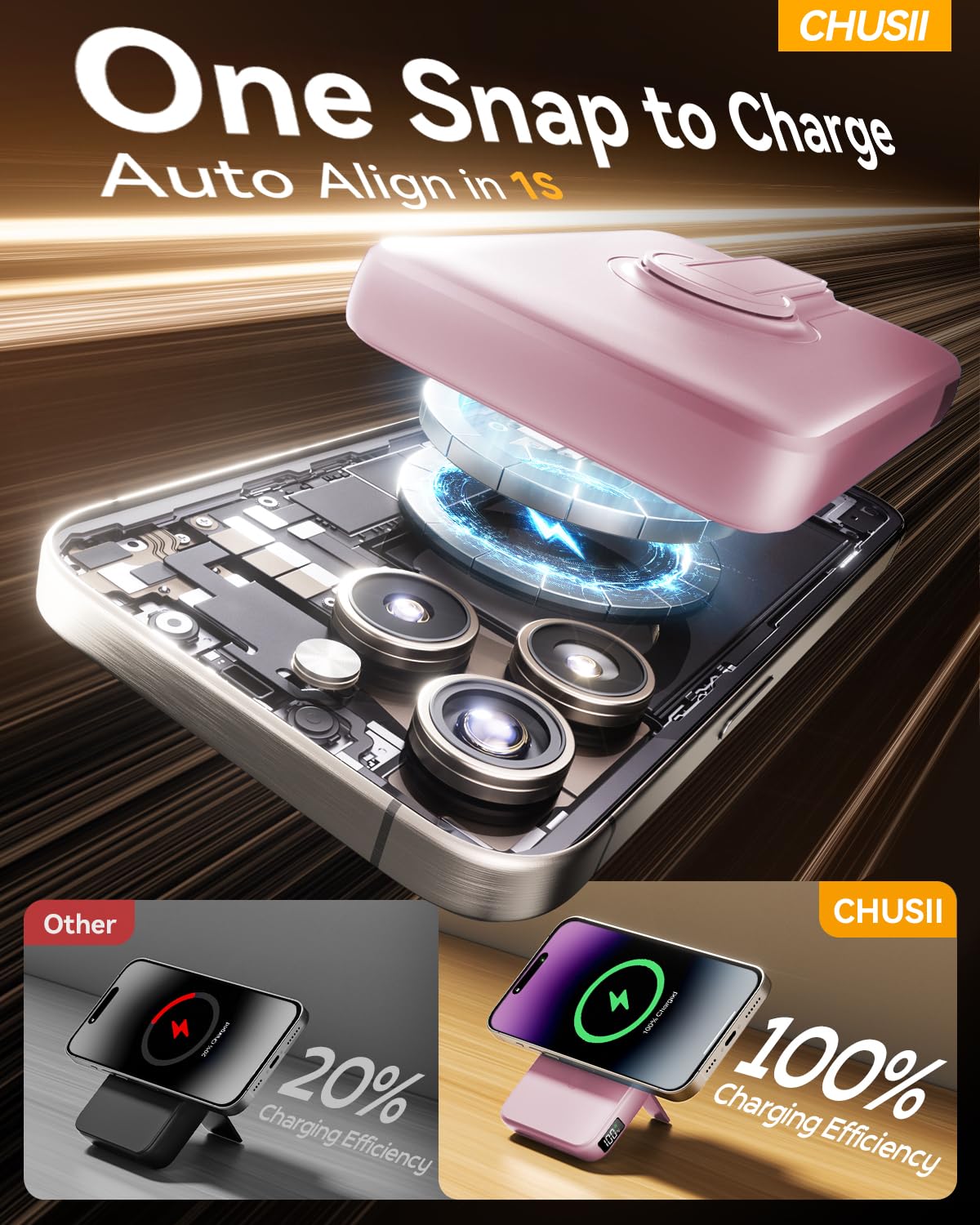 For Magsafe Portable Charger, 12000Mah Wireless Magnetic Power Bank With Stand And Pd 20W Fast Charging, For Magsafe Battery Pac