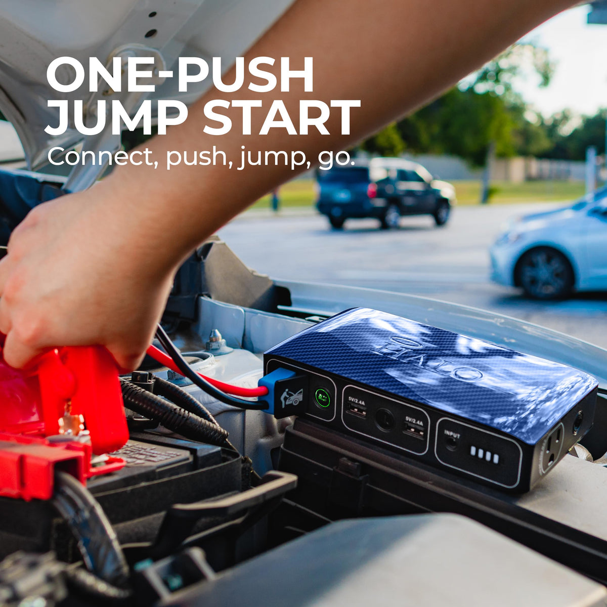 Q: How do I use the HALO Bolt to jump-start my car?A: To jump-start your car with the HALO Bolt, simply connect the included jumper cables to the battery of your vehicle and the HALO Bolt, then press the button to initiate the jump-start. Ensure you follow the safety instructions provided in the operating manual.