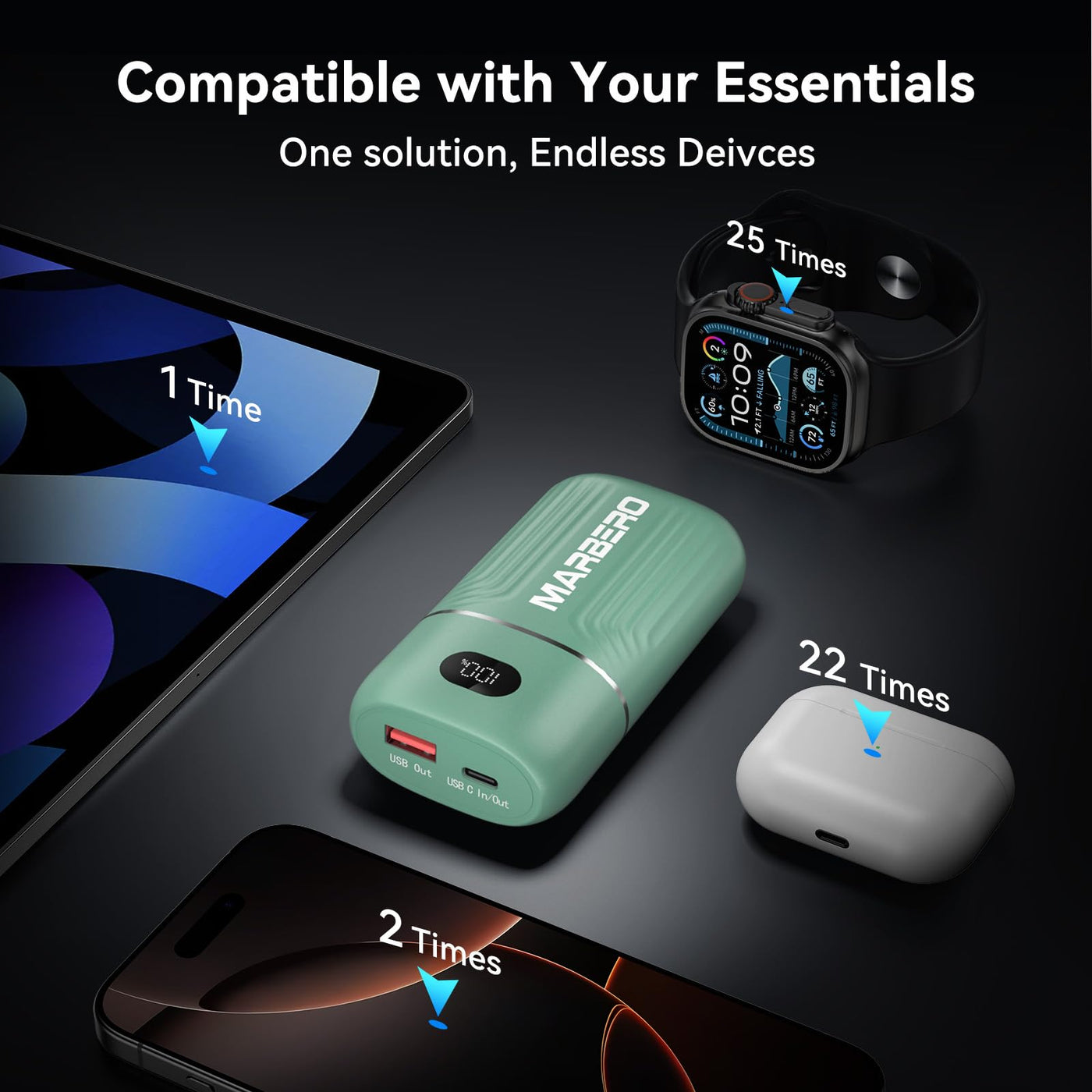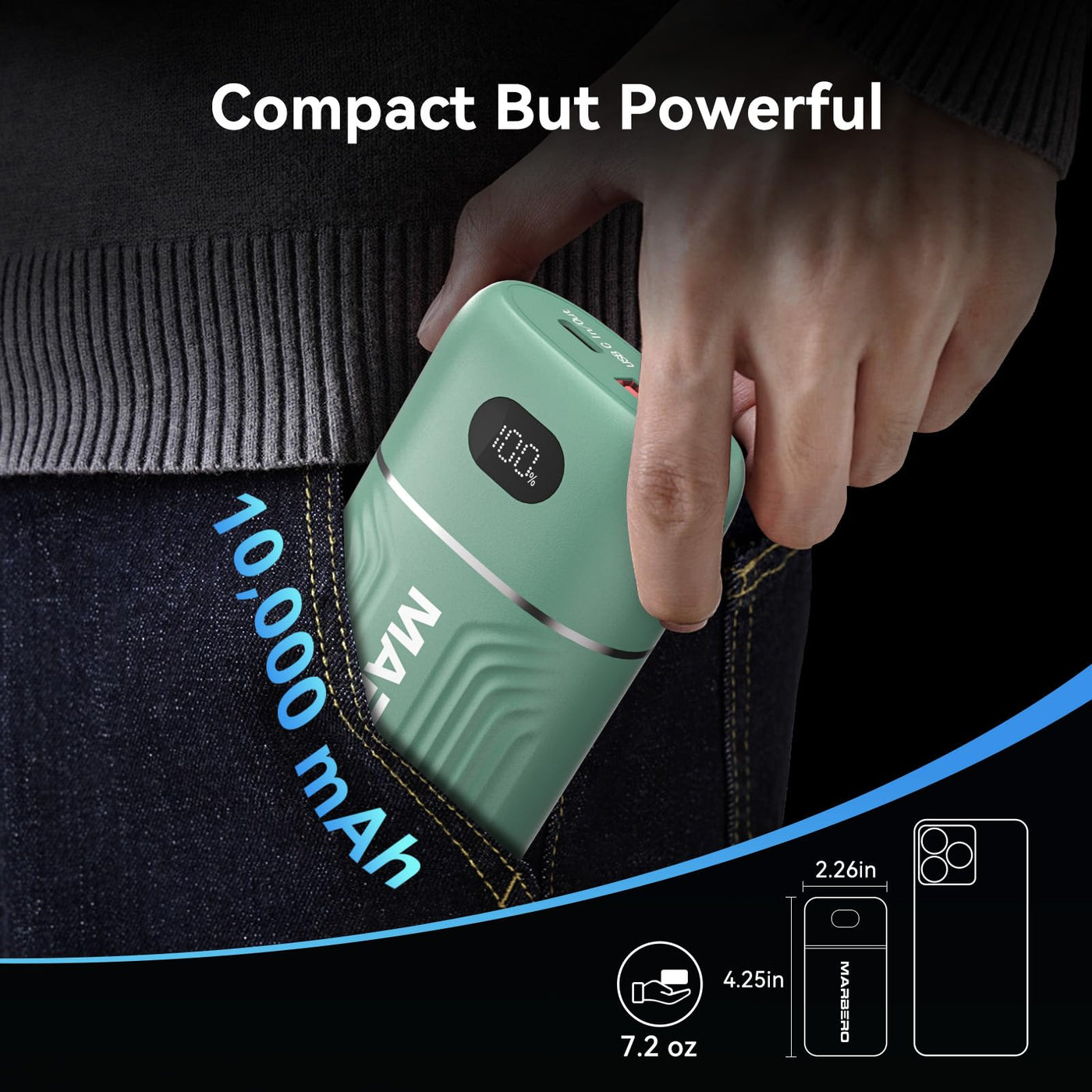 Marbero 10000Mah Cell Phone Battery Bank 18W Usb C In & Out High-Speed Charging Battery Pack Phone Charger Battery Pack Portable Compatible With Iphone Ipad Sumsung Galaxy Google And More (Green)