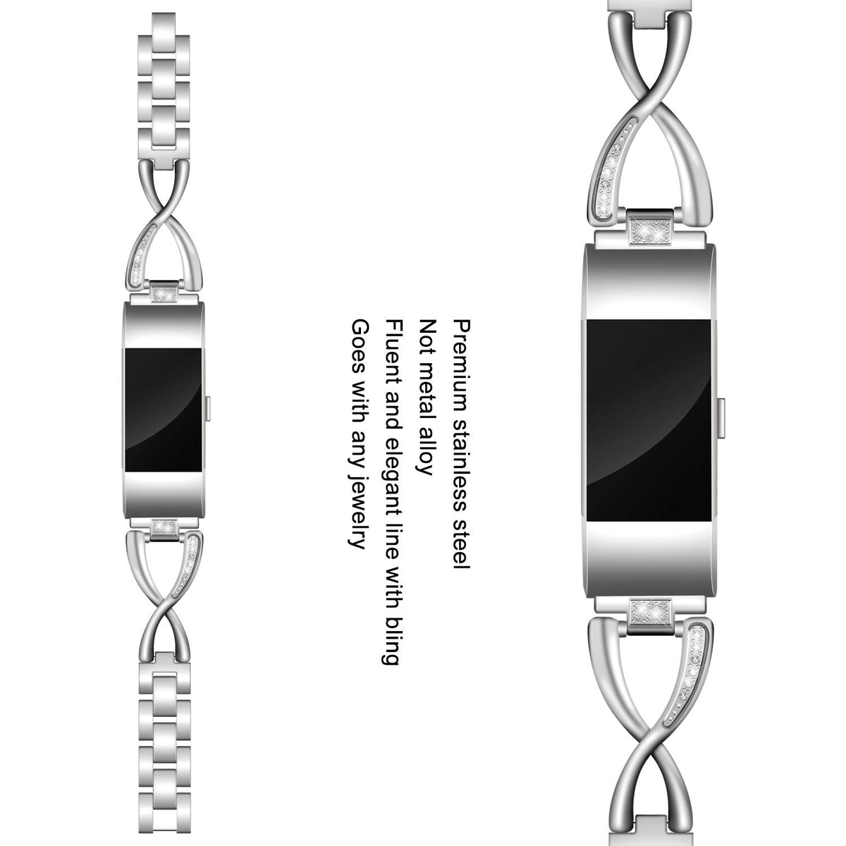 Mtozon Bands Compatible With Fitbit Charge 2, Slim Bling Metal Bands With Rhinestone Replacement Bracelet Women, Silver