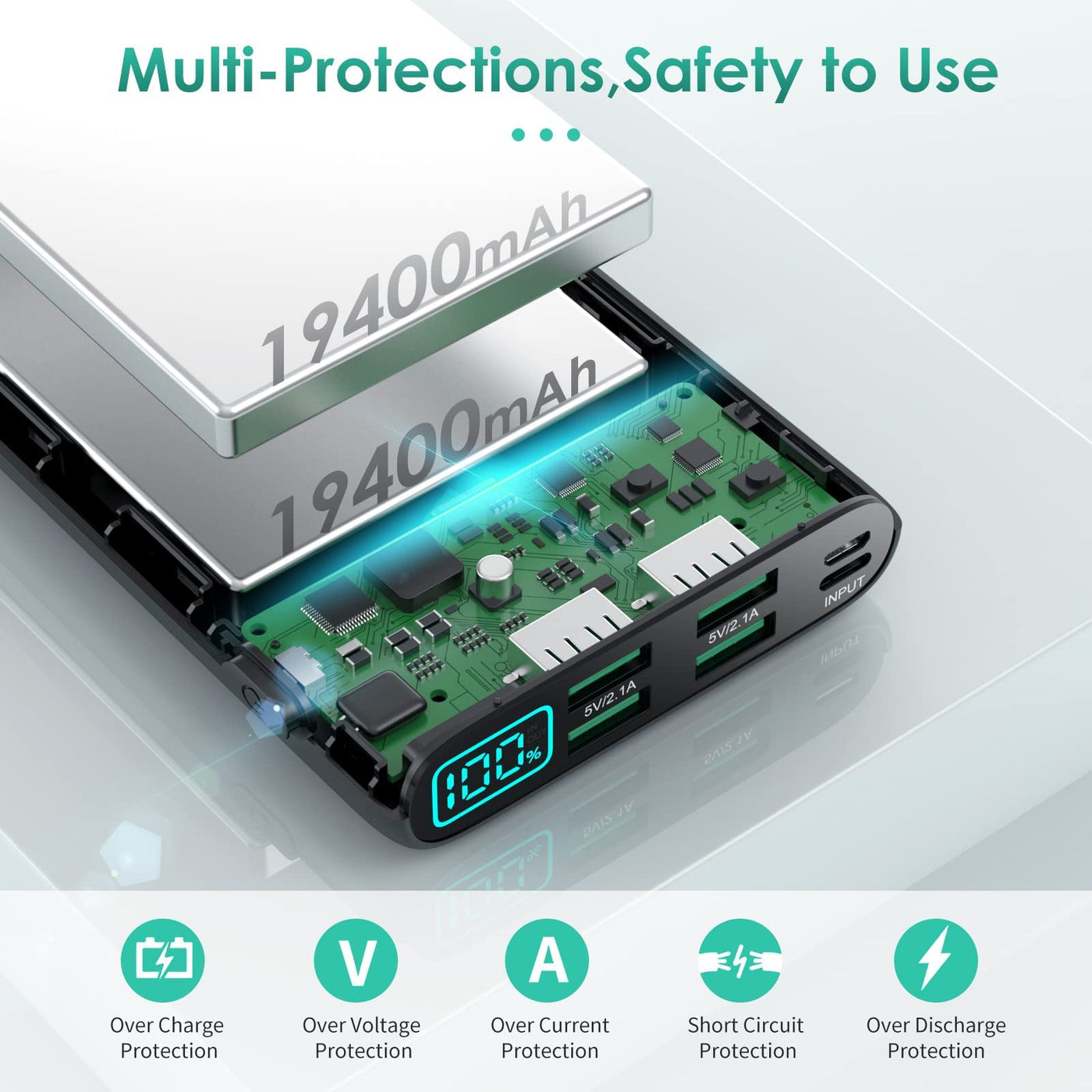 Updated Version 2023 Newest] Portable Charger 38,800Mah, Lcd Display Power Bank, 4 Usb Outports + Dual Input Battery Pack Backupfeature:Ultra-High Capacity: One Of The Best Portable And Largest Capacity 38800Mah Portable Phone Chargers 38800Mah Portable Charger With Ultra-High Capacity Can Charging For Iphone 12 11 Above 6 Times, Samsung Galaxy S20 Above 5 Timessimultaneous Charging Multiple Devices: Four Usb Outputs Portable Charger Allow You To Charge 4 Devices Simultaneously Charge Multiple Devices, Simultaneous Charging, Charge While Rechargingthe Smart Lcd Digital Display Shows The Remaining Power Of This Unittype-C Input And A Micro Port To Recharging This Unit For Your Optionsafety Protection: Built In Reliable Lithium Polymer Battery Helps To Charge Your Phone Safely, Wonat Get Too Hot Or Cause A Lot Of Heat On The Battery Of Your Phone Universal Compatibility: Compatible With Ipad, Iphone 13 Pro Max 13 Mini 13 12 Pro 12 11 Xs Xs Max Xr 8 Plus, Samsung S20 Google Lg, Galaxy Android Smartphones, Bluetooth Headphone, Speaker, Fitness Tracker, Smart Watch, ,Ipad Tablets And Other Usb-Charged Electronic Devices It Is Perfect For Travel, Home, Office And Other All Activitiespls Notes: 1We Suggest You Please Charge Power Bank In Full For The First Using2Includes A Micro Usb Cable Only3The Usb-C Input Port And Micro Usb Port Are For Input Onlyspecifications:Certification: Rohs Fcc Cebattery Capacity: 38,800Mahbattery Type: Li-Polymer Batteryaterial: Abs+Pcinput: Micro Usb 5V21A, Type-C 5V21Aoutput: 4 Usb: 5V21Aitem Size: 62*31*09Inapplication: Portable, For Home, Office, Outdoors, Gifts