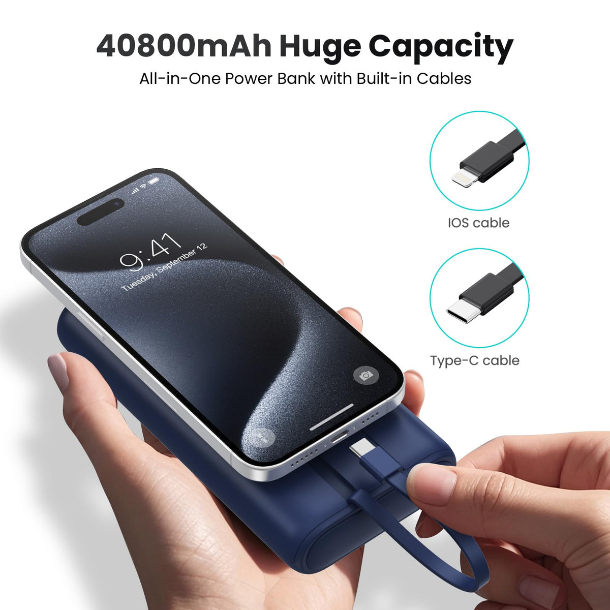 Portable Charger 40,800Mah Power Bank 25W Portable Battery Pack With 2 Built In Cables [2024 Upgraded], Pd Qc4.0 Fast Charging P