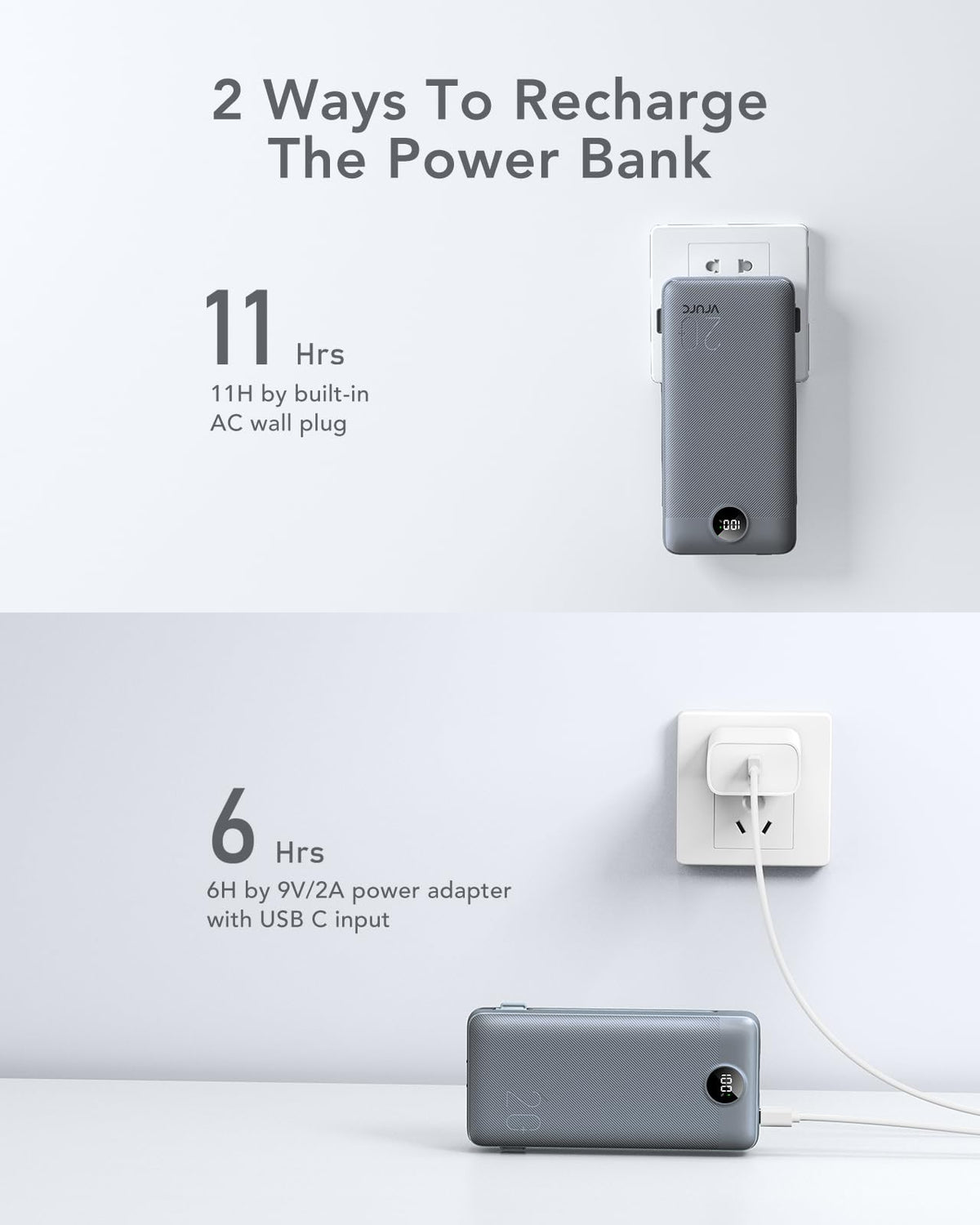 10000Mah Portable Charger With Wall Plug, Fast Charging